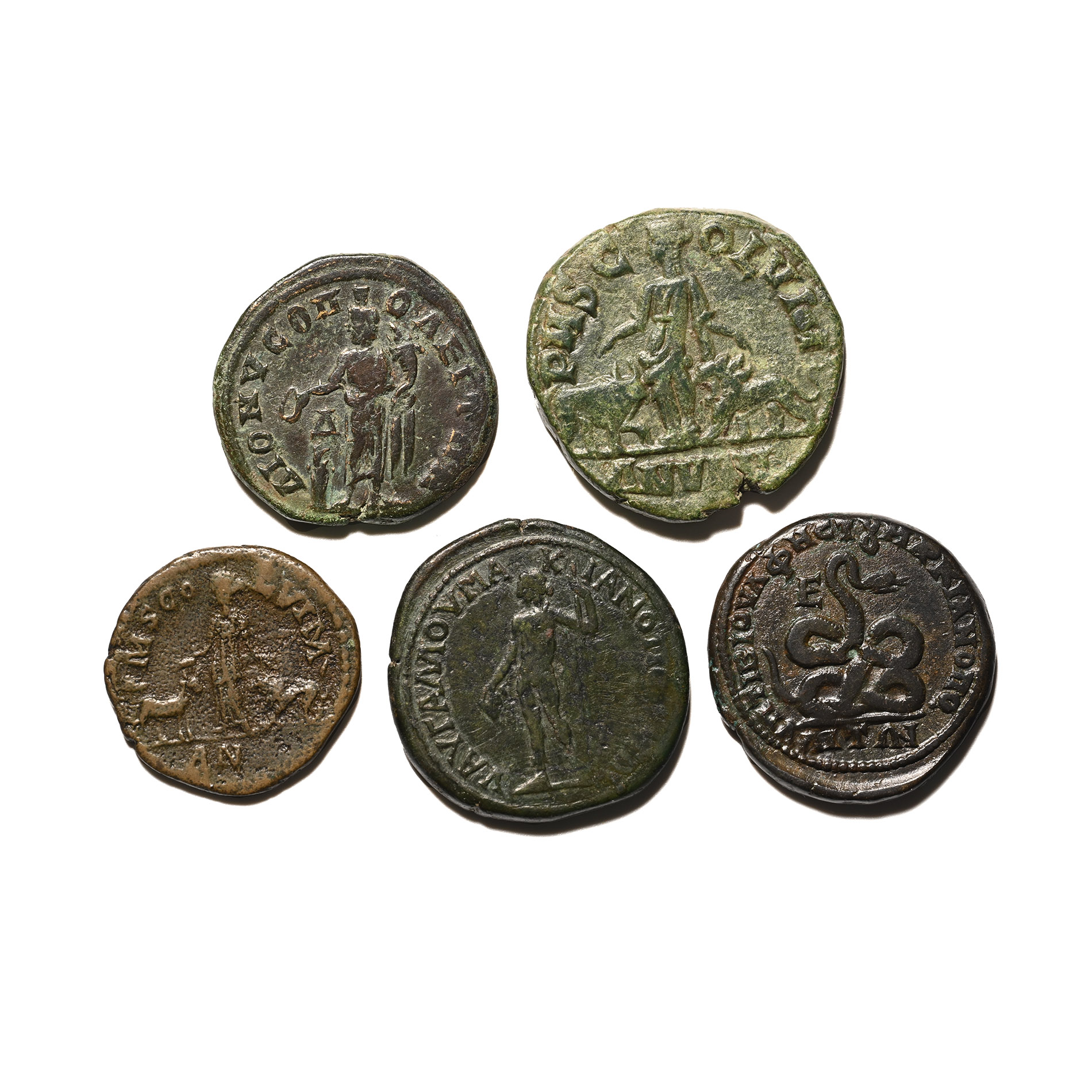 Group of Five [5] Roman Provincial AE Coins. 3rd century AD.