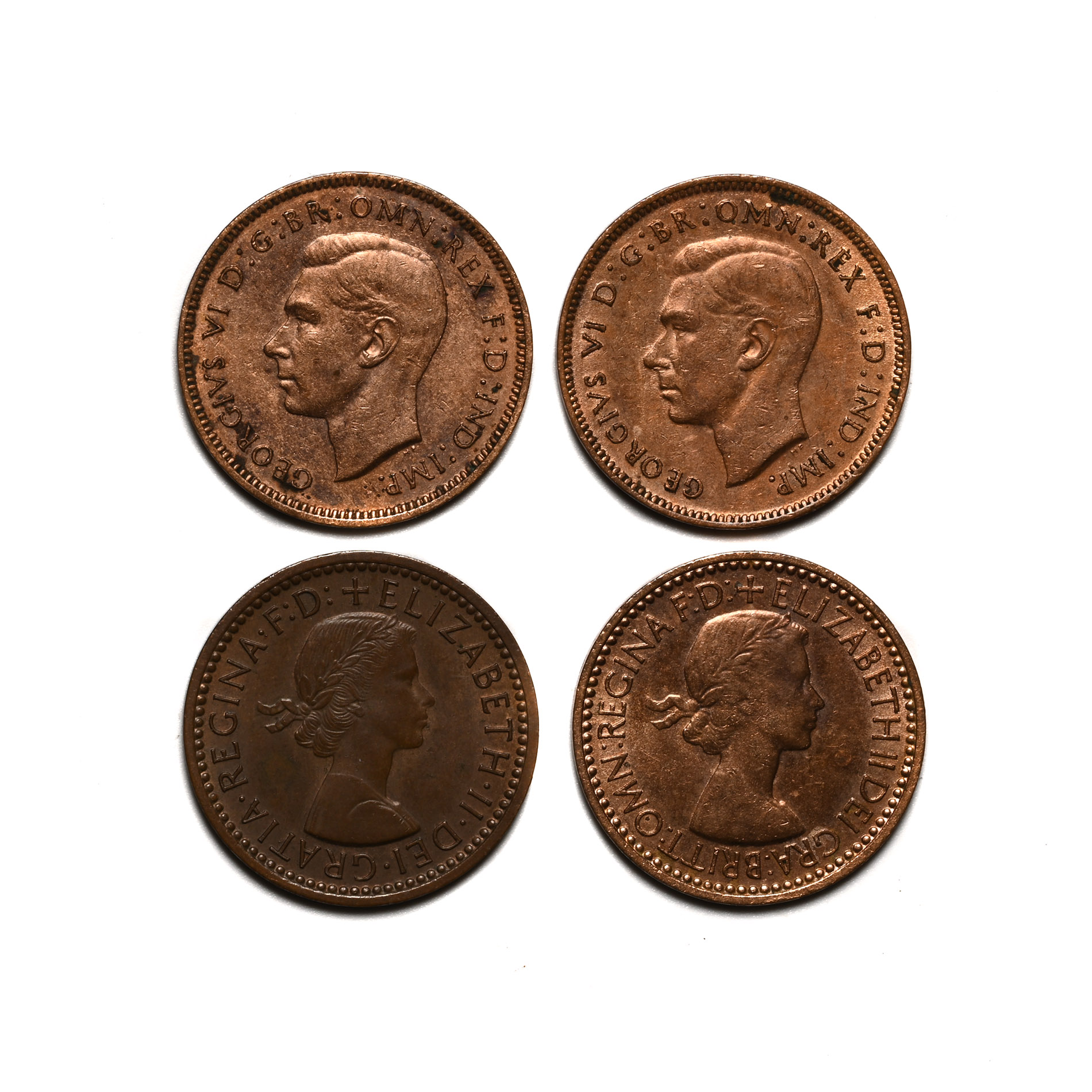 Farthings of George VI and Elizabeth II. 11.29gr total.