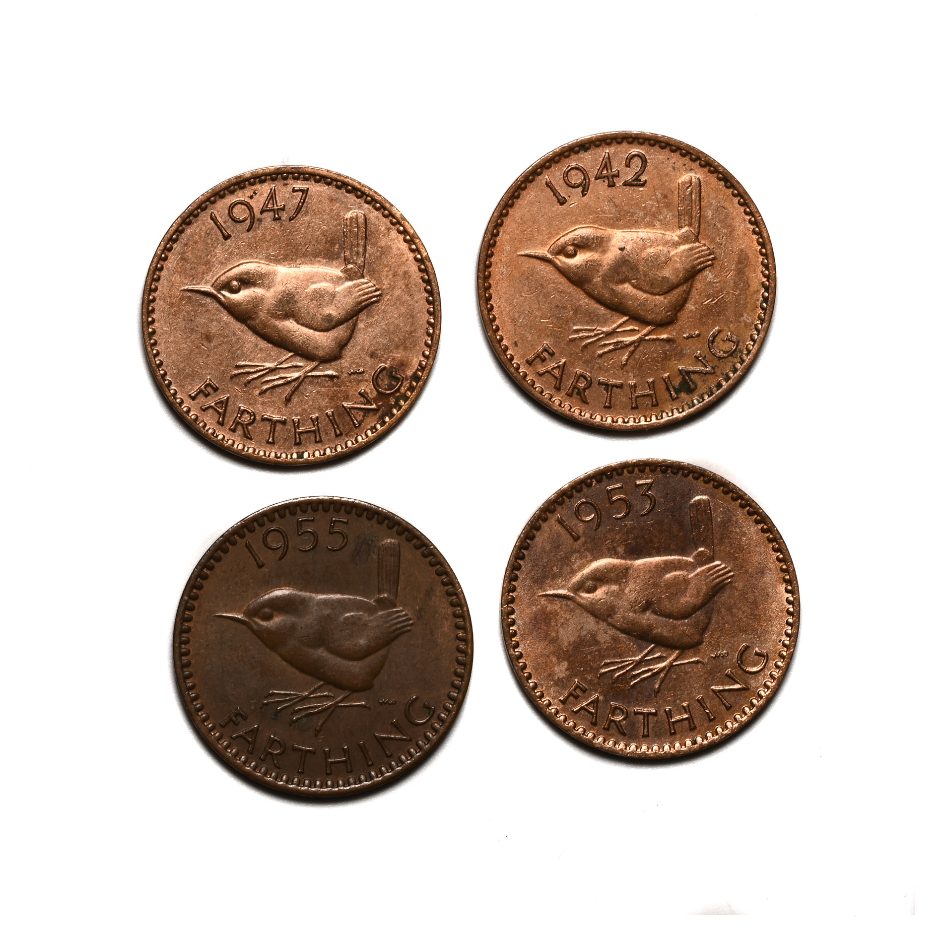 Group of Four (4) Great Britain, Windsor CU Farthings. Dated 1942-1955.