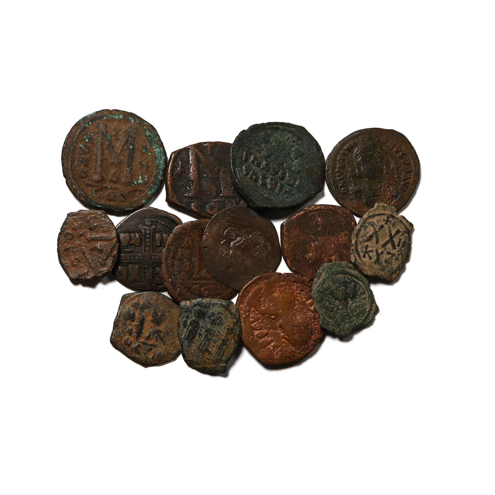 Group of Fourteen [14] Byzantine AE Coins. 6th-10th century AD.