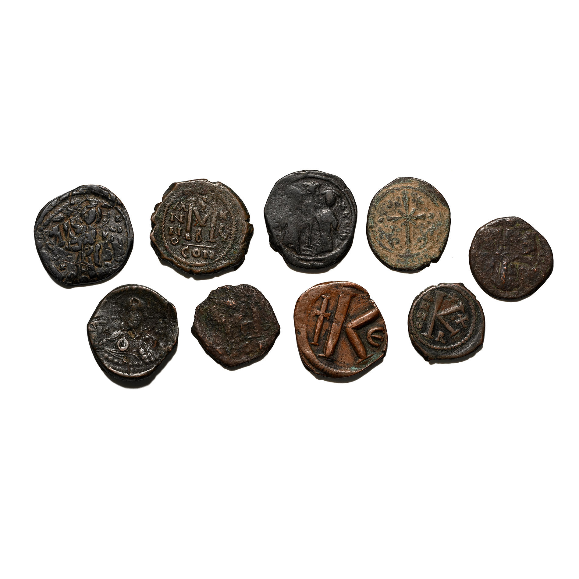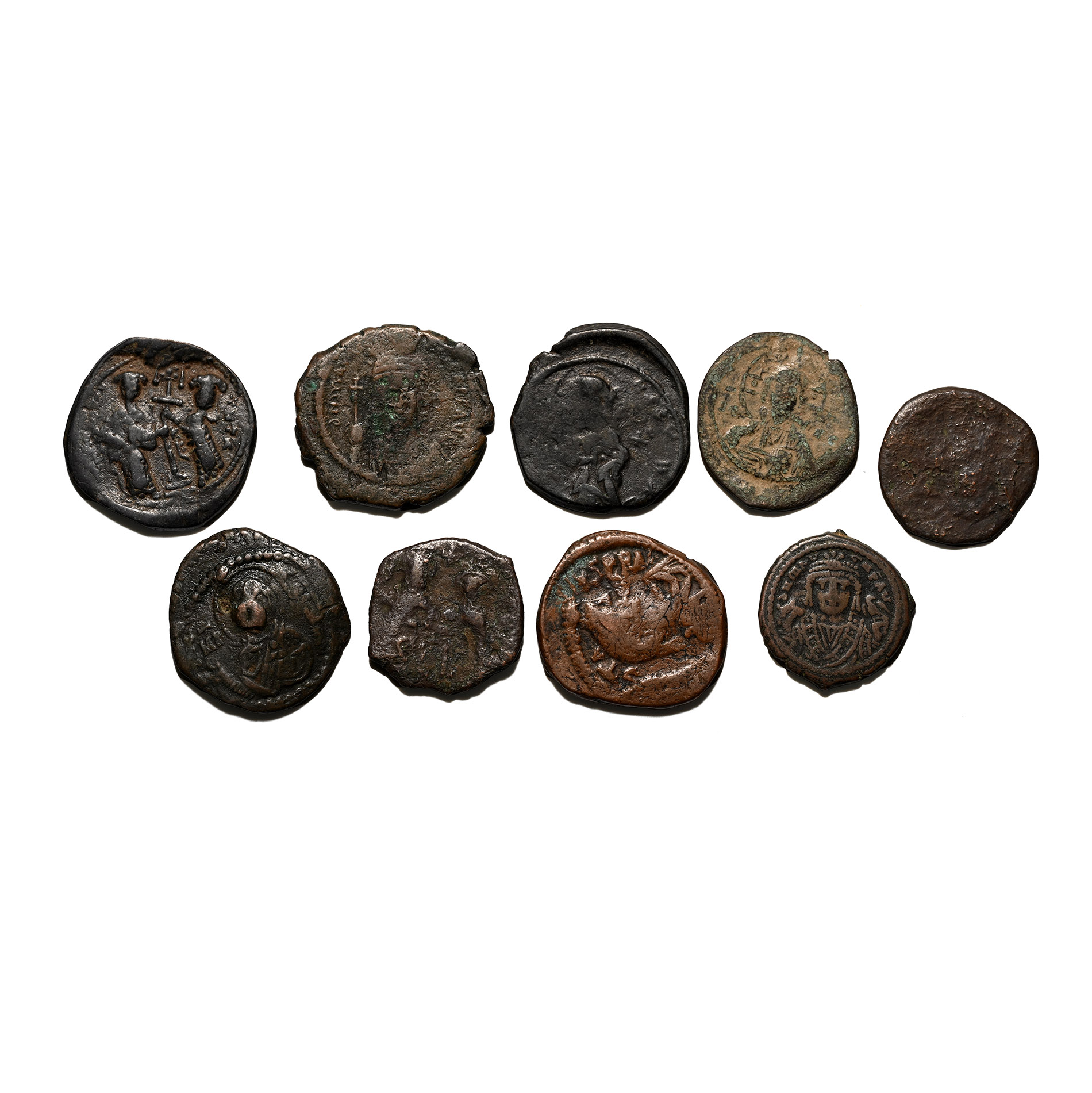 Group of Nine [9] Byzantine AE Coins. 7th-12th century AD.