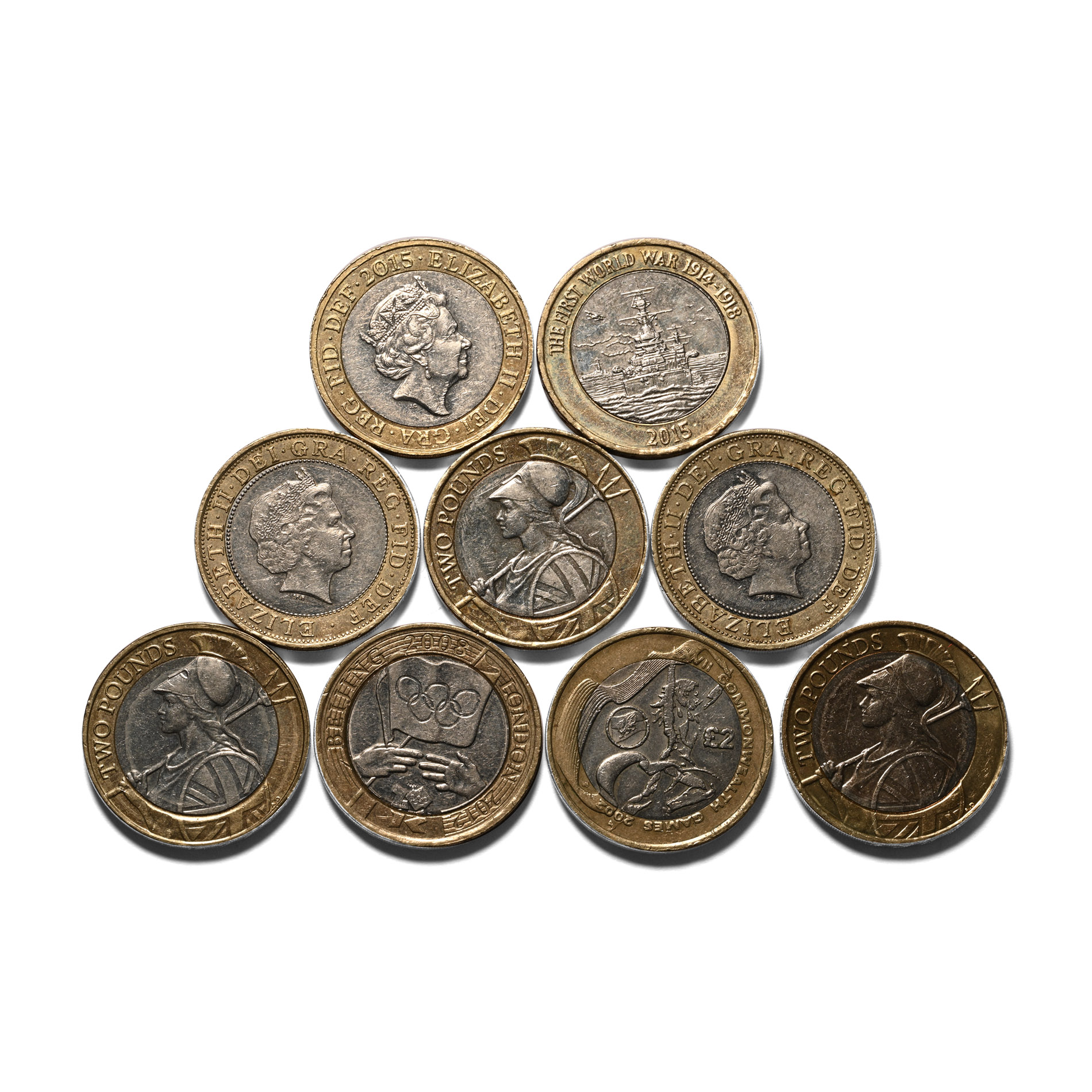 Group of Nine [9] Elizabeth II Two Pounds Coins. 2002-2016.
