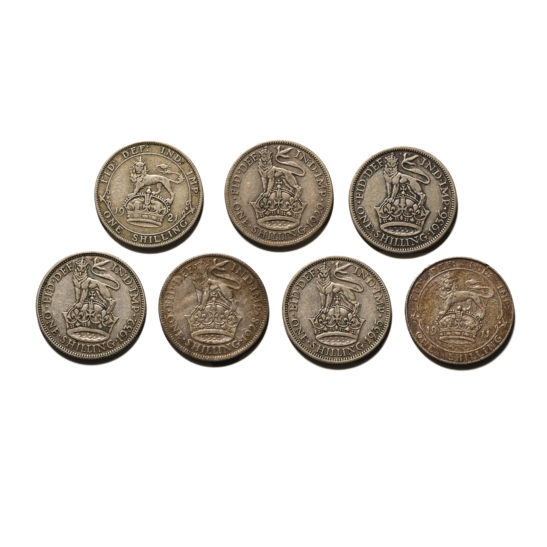 Group of Seven [7] George V AR Shillings. 1910-1936.