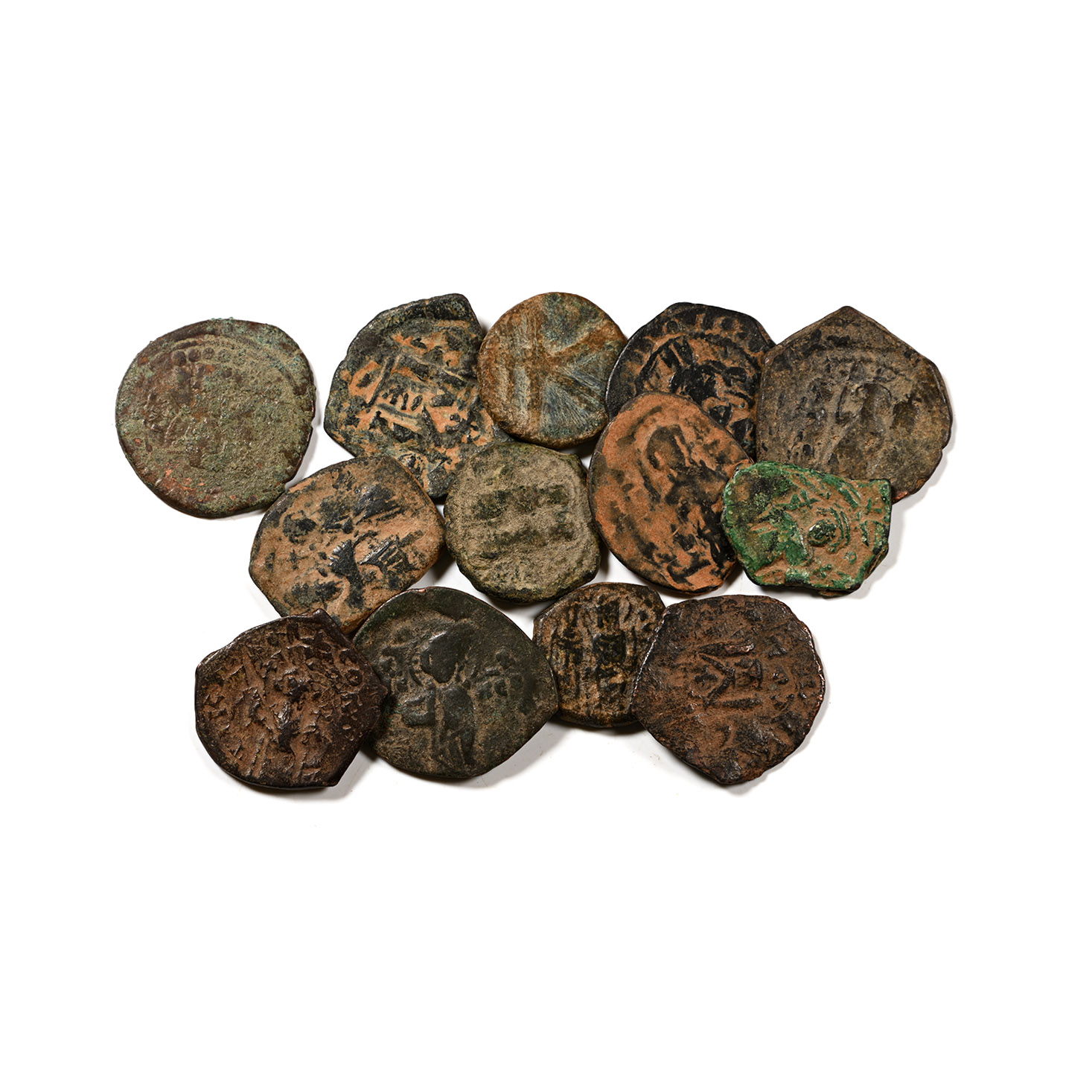 Group of Thirteen [13] Byzantine AE Coins. 6th-9th century AD.