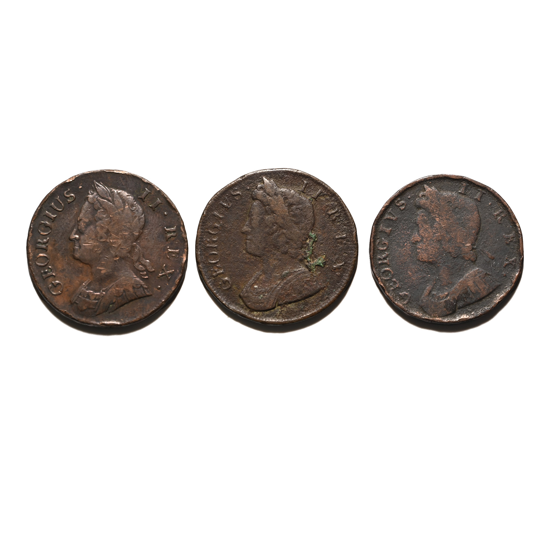 Group of Three [3] CU Halfpennies of George II. 1727-1760.