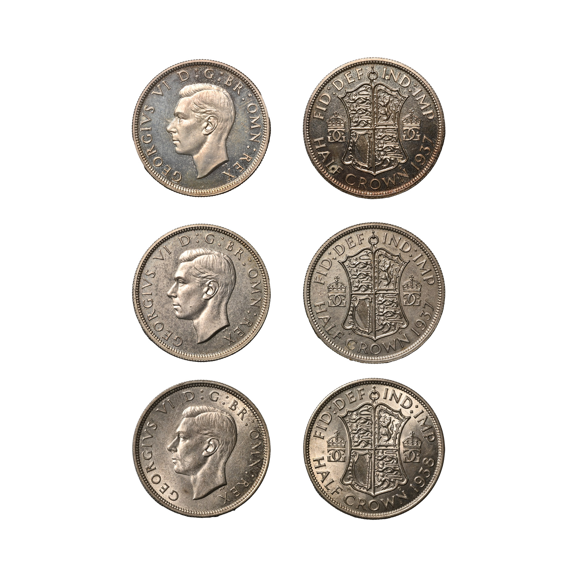 Group of Three [3] George VI AR Halfcrowns. 1936-1952.