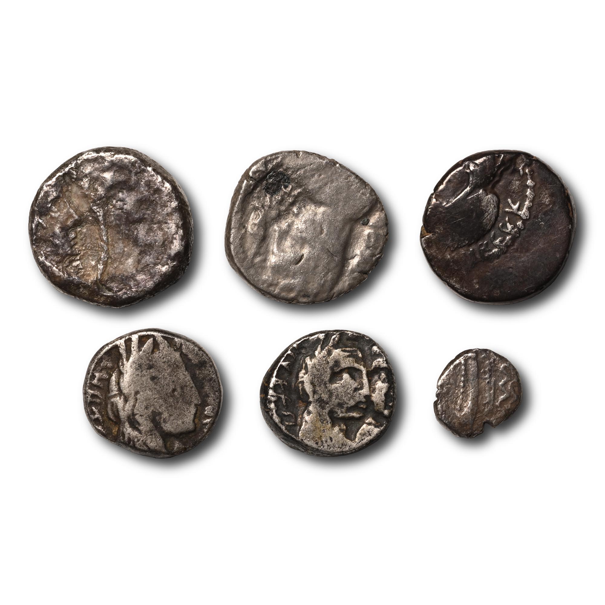 5 Nabataean and 1 Phoenician AR Coins 4th century BC-1st century AD.