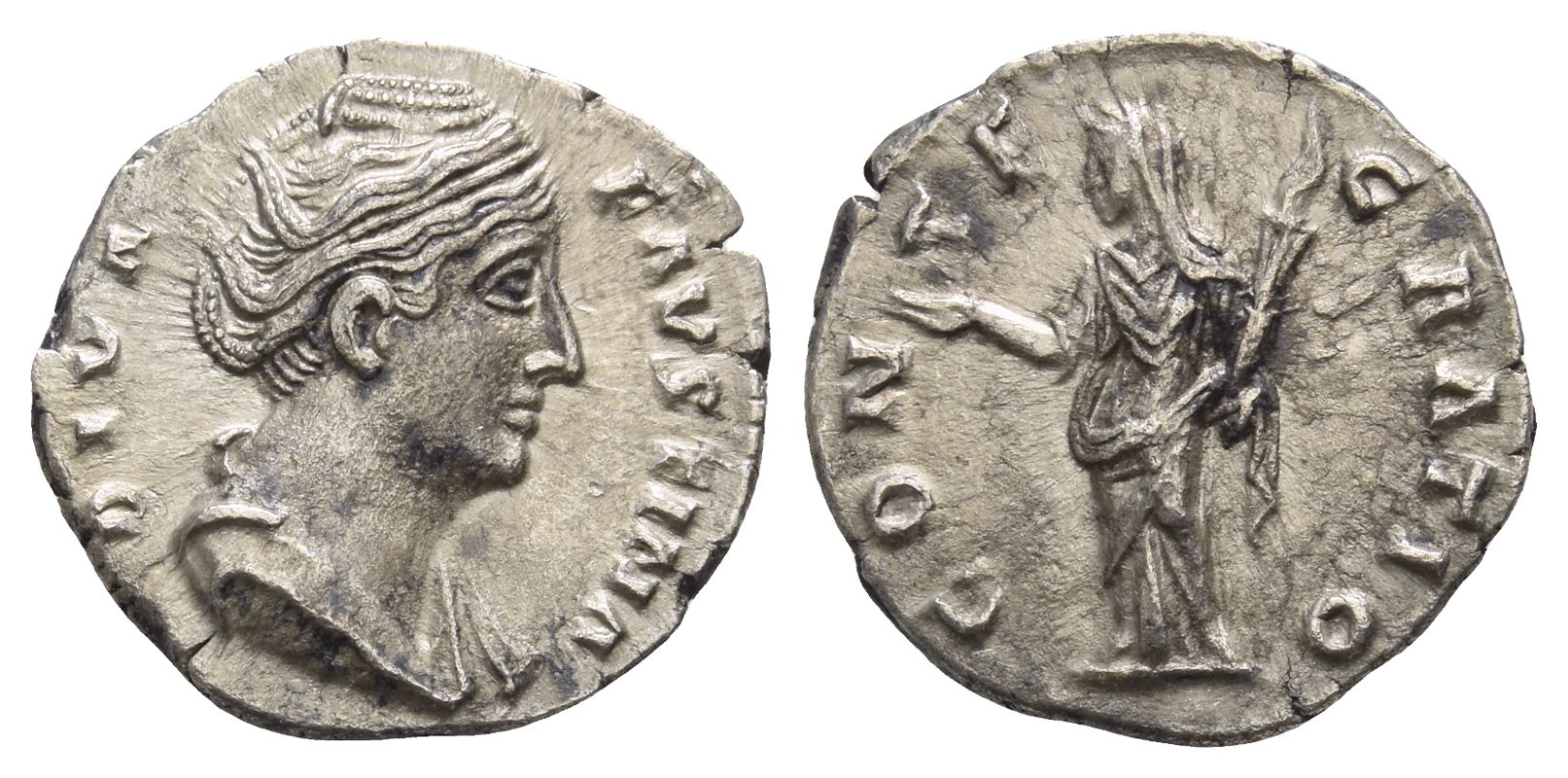 9 Faustina Senior AE Denarius. 2nd century AD.
