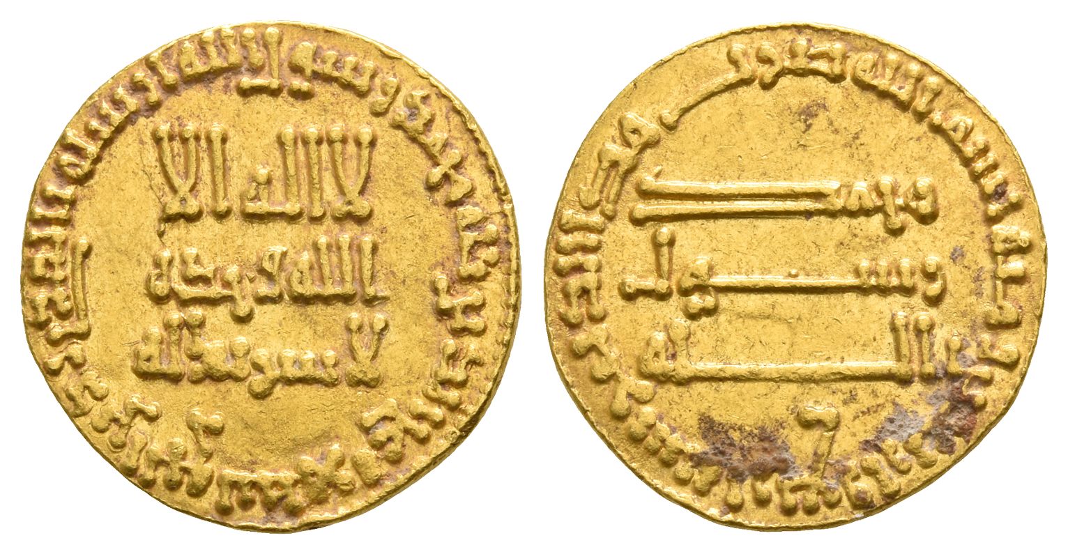 Abbasid Caliphate AV Dinar. Time of al-Mahdi, AH 158-169 (AD 775-785). Dated AH 164 (AD 780/1). Unnamed (Madinat al-Salam [Baghdad]?) mint.