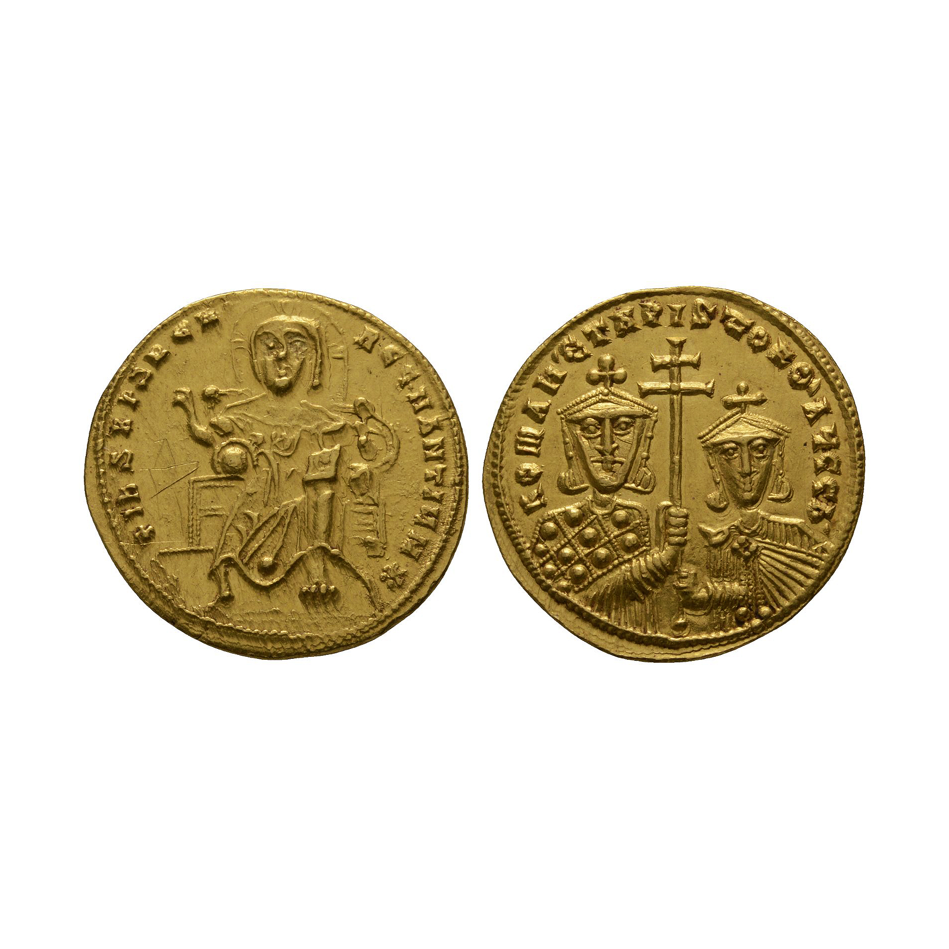 Ancient Byzantine Coins - Constantine VII with Romanus I and Christ - AV Gold Solidus 913-959 AD