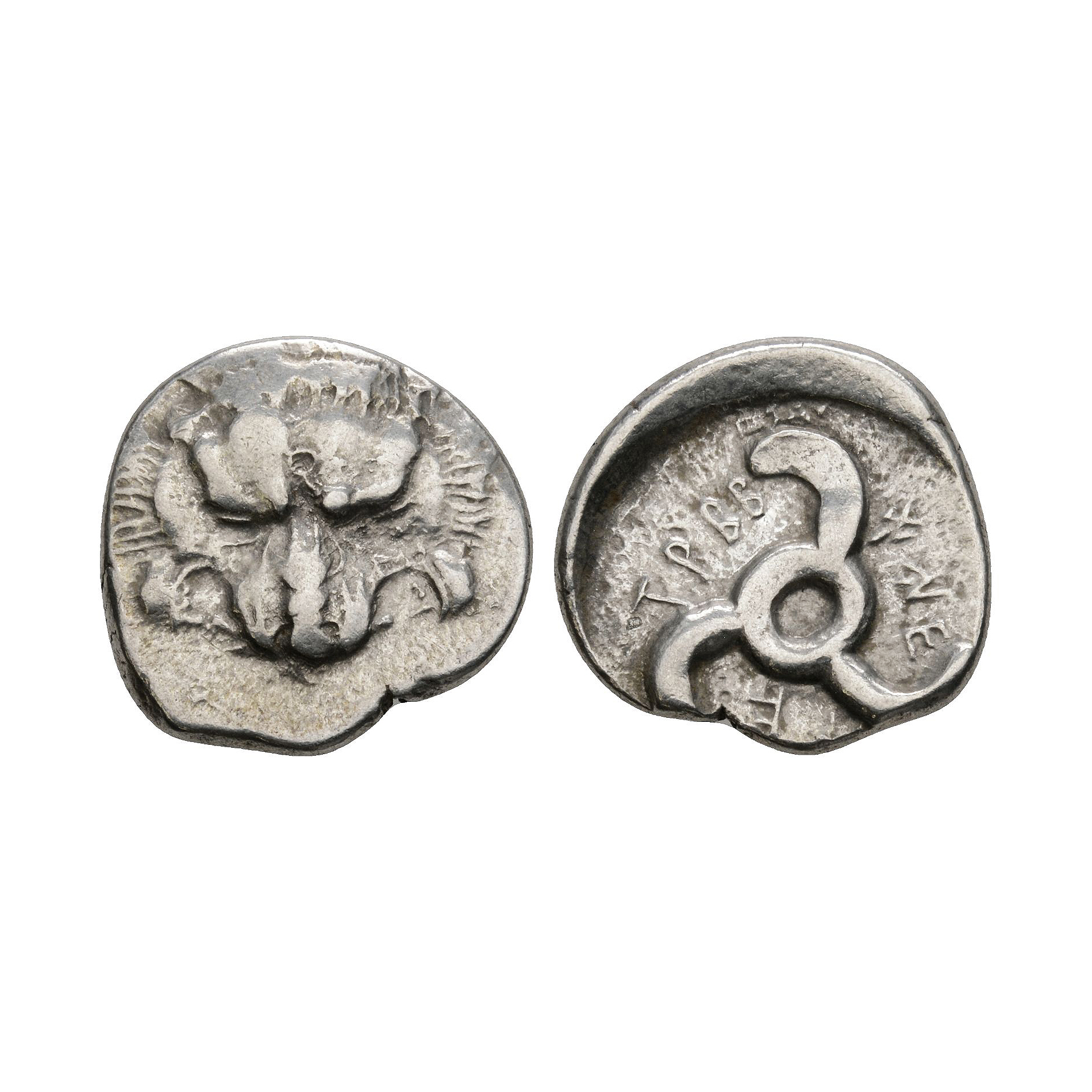 Ancient Greek Coins - Lycia - Trbbanimi - Triskeles AR Fraction 390-385 B.C.
