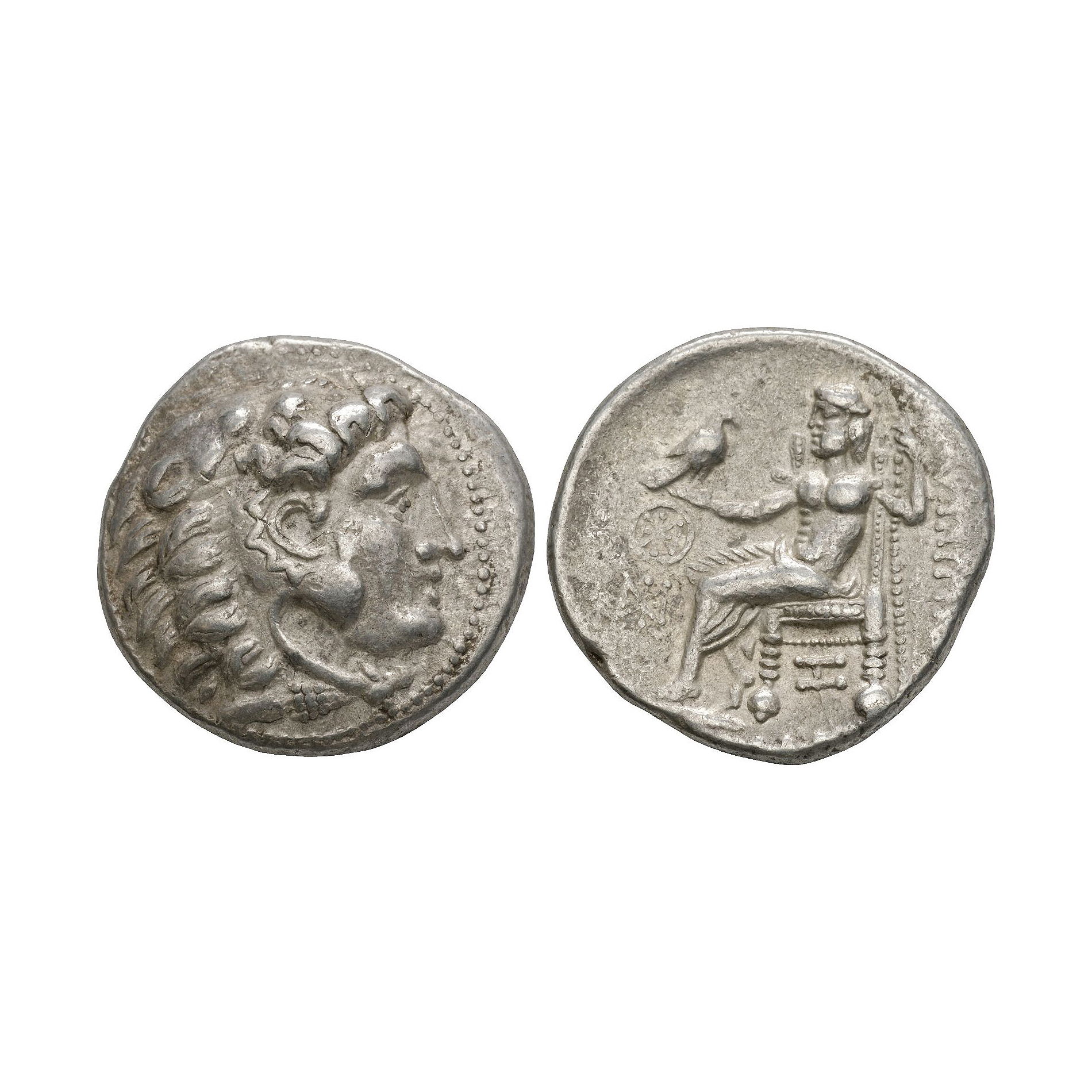 Arados mint. Obv: head of Herakles right, wearing lionskin headdress. Rev: BASILEWS FILIPPOY beneath and to right of Zeus seated left, right leg drawn back, holding eagle and sceptre; DID monogram in circle over DID monogram in left field, Greek archaic Z beneath throne. 16.55 grams.