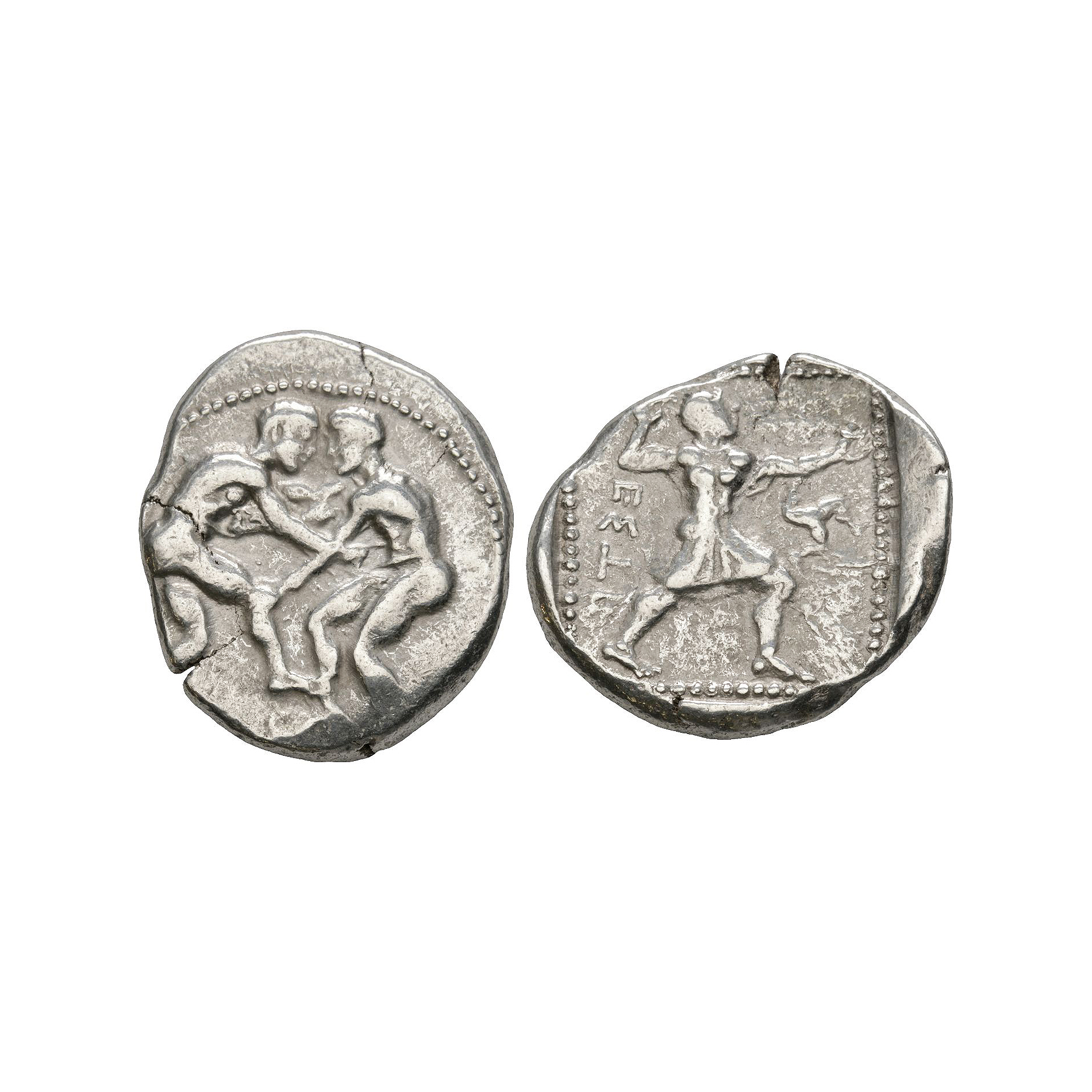 Ancient Greek Coins - Pamphylia - Aspendos - Wrestlers AR Stater 330-250 B.C.