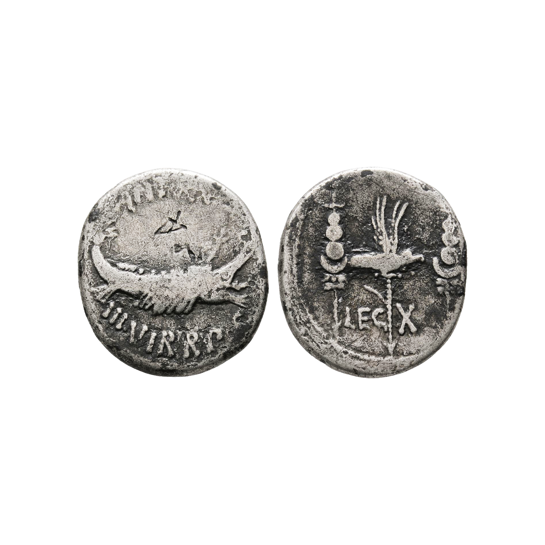 Ancient Roman Imperatorial Coins - Mark Antony - Legion X - Galley AR Denarius 32-31 B.C.