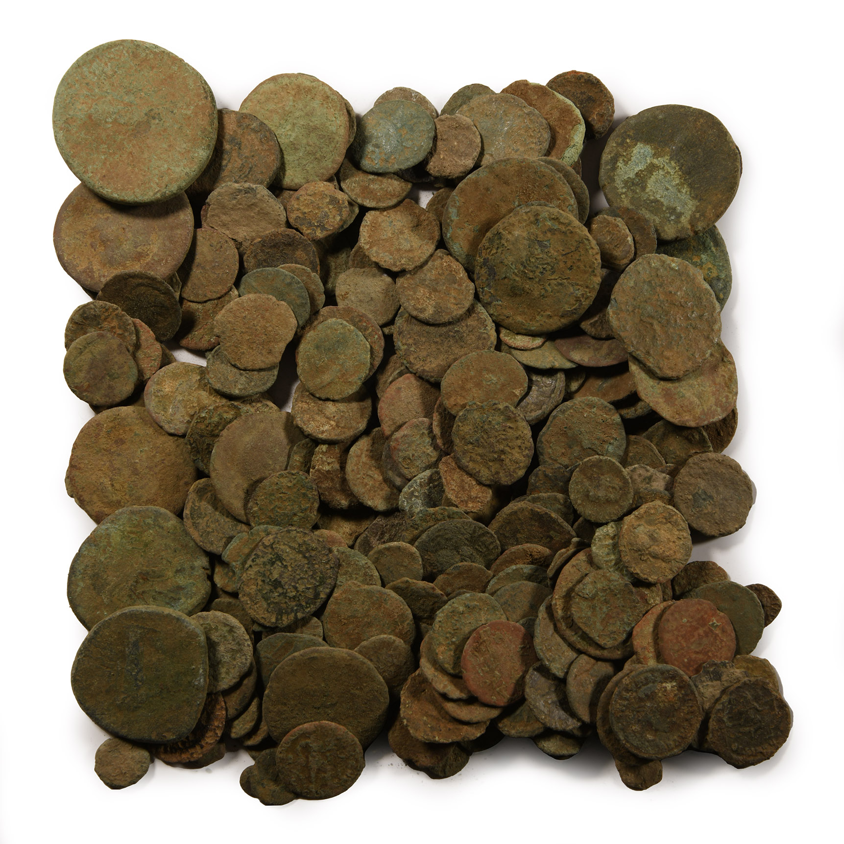 Comprising: mixed bronze coins of various emperors, issues and types. 489 grams total, 8-32 mm.