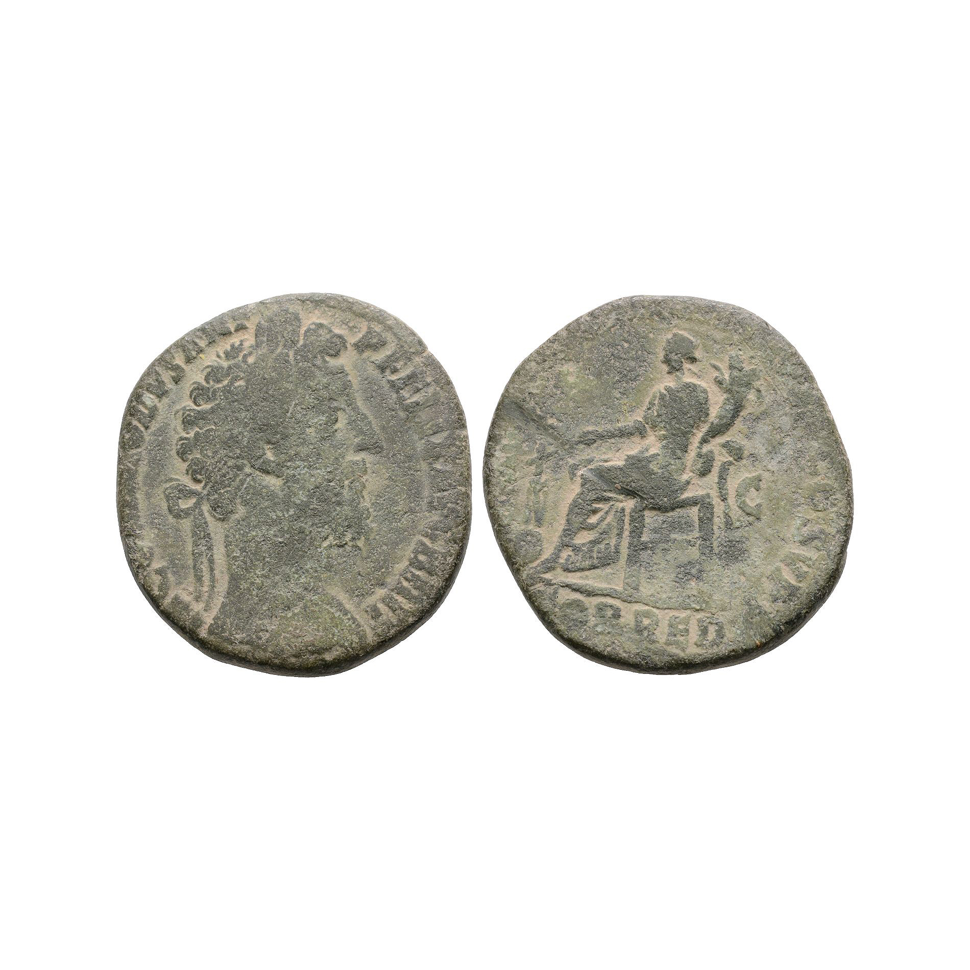 Rome mint. Obv: M COMMODVS ANT P FELIX AVG BRIT legend with laureate bust right. Rev: P M TR P XIII IMP VIII COS V legend with Fortuna seated left holding rudder on globe and cornucopia; S - C across fields, FOR RED in exergue. 16.05 grams.
