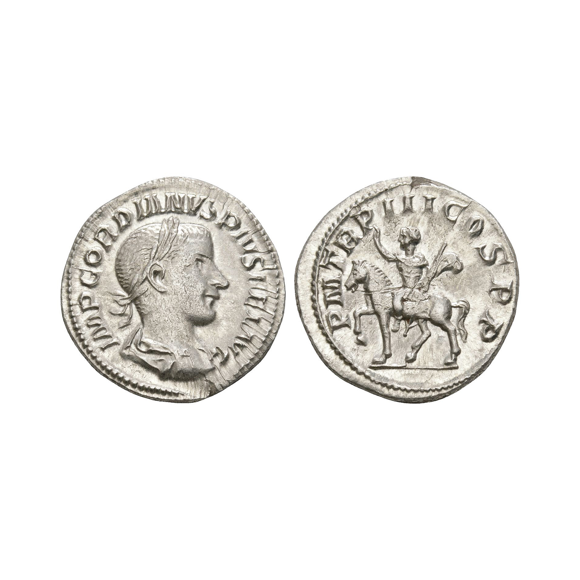 Ancient Roman Imperial Coins - Gordian III - Emperor Riding AR Denarius 240 A.D.