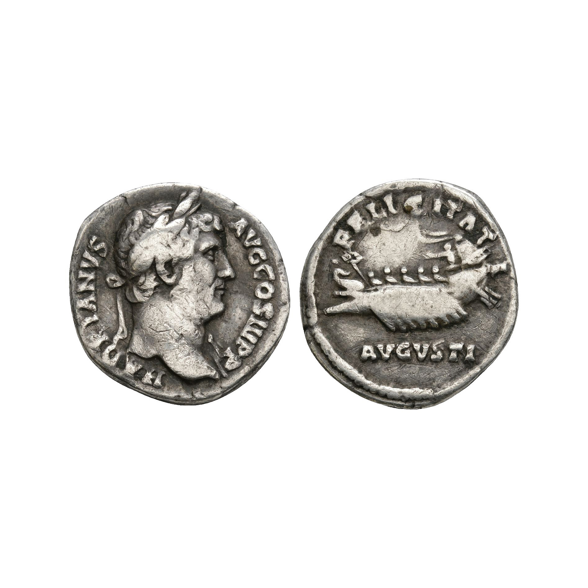 Ancient Roman Imperial Coins - Hadrian - Galley AR Denarius 132 A.D.