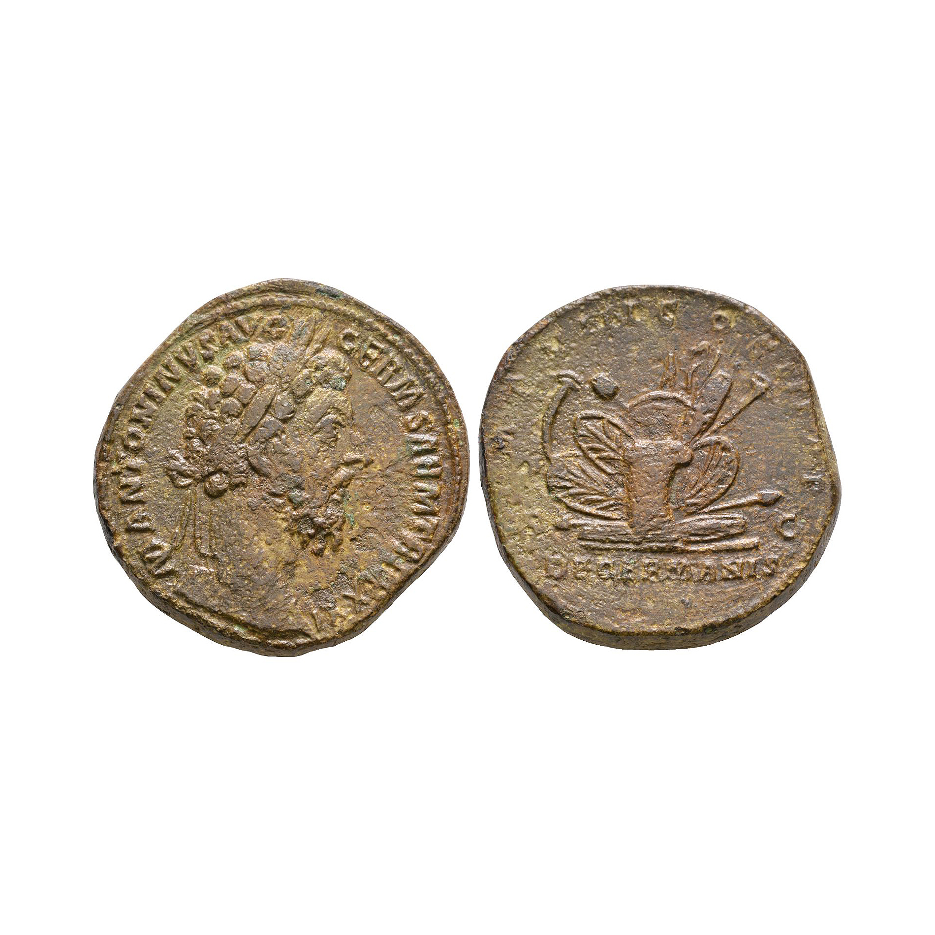 Ancient Roman Imperial Coins - Marcus Aurelius - Pile of Arms AE Sestertius 177 A.D.
