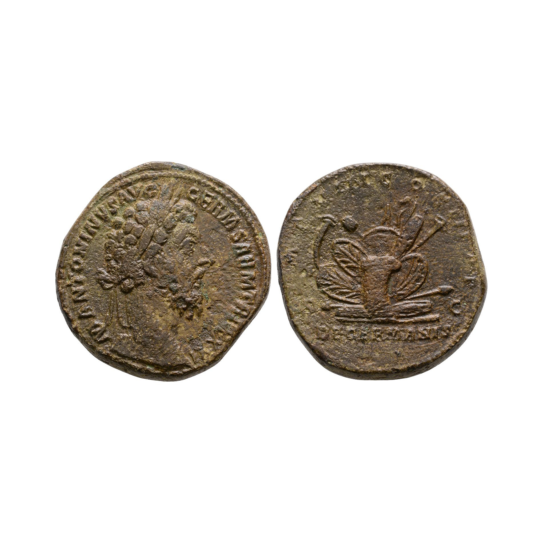 Ancient Roman Imperial Coins - Marcus Aurelius - Pile of Arms AE Sestertius 177 A.D.