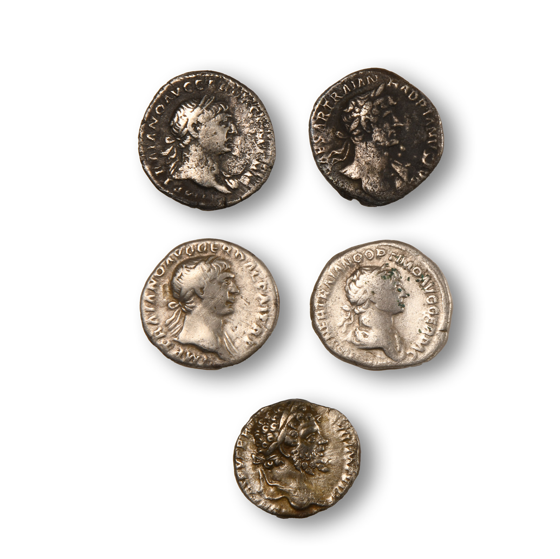 Mixed group comprising: including those of emperors Trajan and Hadrian, various issues and types. 13.30 grams total, 16.70-18.49 mm.