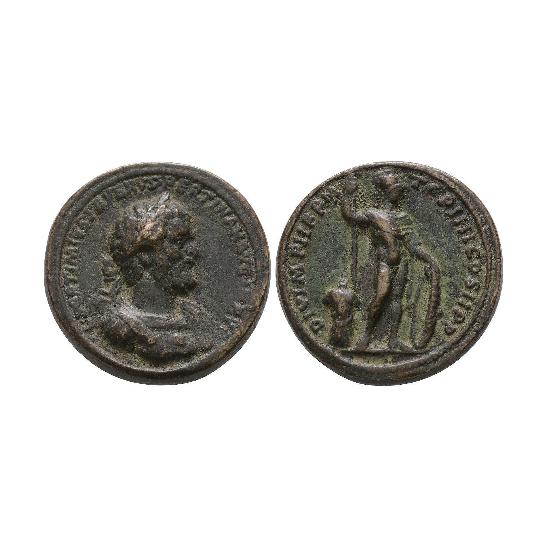 Cast copy of a Paduan medallion. Obv: L SEPTIMIVS SEVERVS PERT MAX AVG IMP V, laureate head right. Rev: DIVI M PII F PM TRP IIII COS II P P, Mars standing right holding shield and spear to right of cuirass. 48.17 grams, 38 mm.
