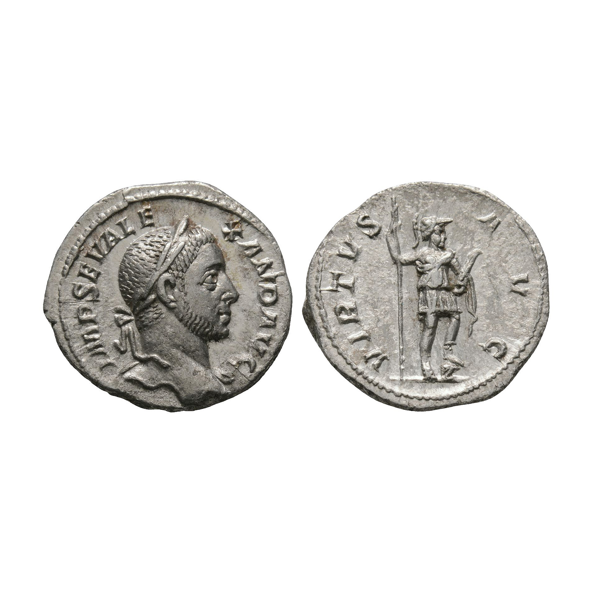 Ancient Roman Imperial Coins - Severus Alexander - Virtus AR Denarius 231-235 A.D.