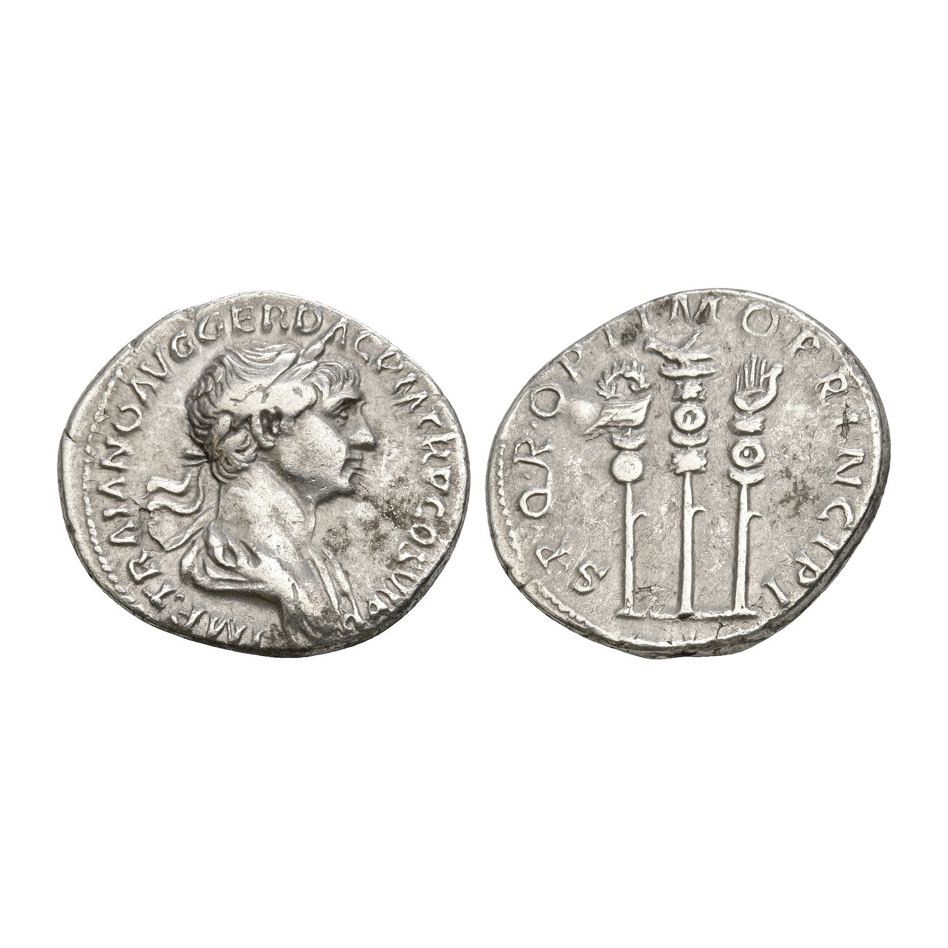 Ancient Roman Imperial Coins - Trajan - Standards AR Denarius 113 A.D.