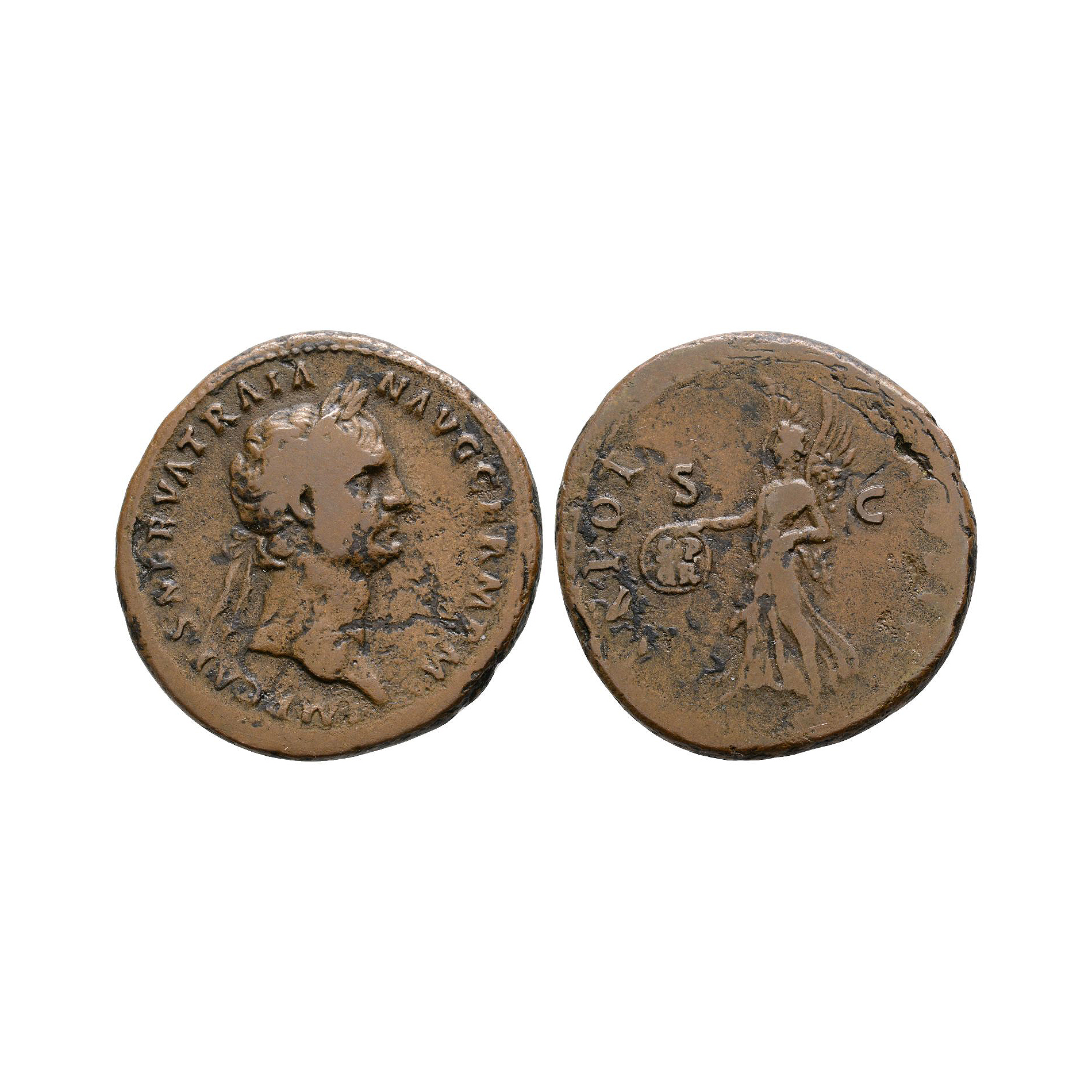 Ancient Roman Imperial Coins - Trajan - Victory AE As 100 A.D.