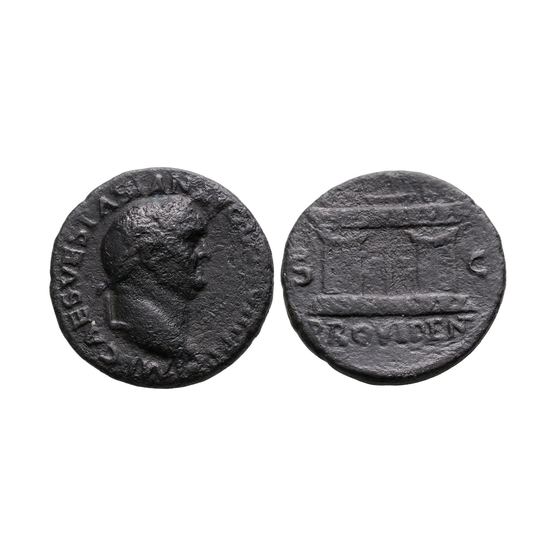 Ancient Roman Imperial Coins - Vespasian - Altar Enclosure AE As 71 A.D.