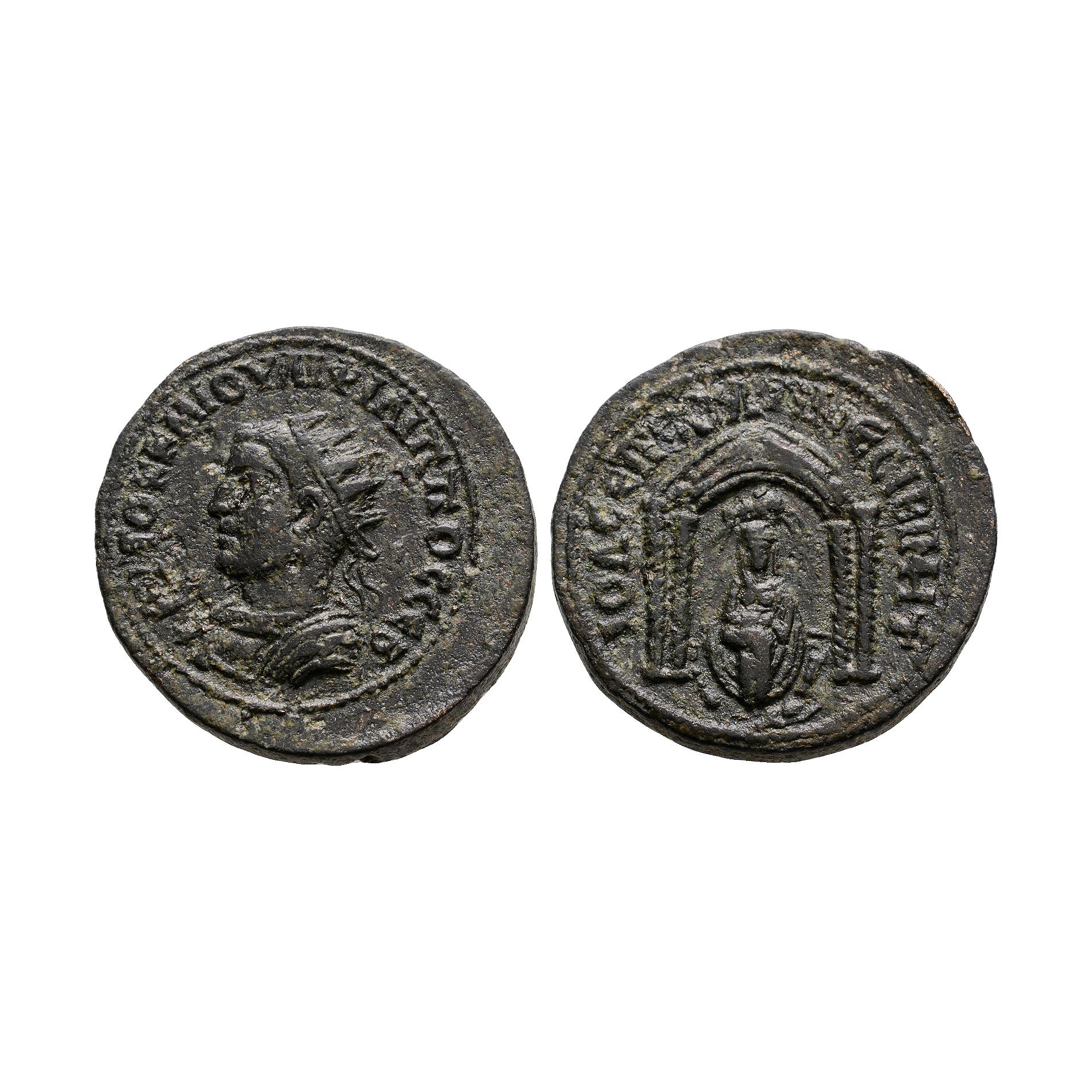 Nisibis mint. Obv: AYTOK K M IOVΛI ΦIΛΛIΠOC CEB legend with radiate and cuirassed bust left. Rev: IOV CEΠ KOΛΩ NECIBI MHT legend with Tyche seated facing within tetrastyle shrine. 13.10 grams.