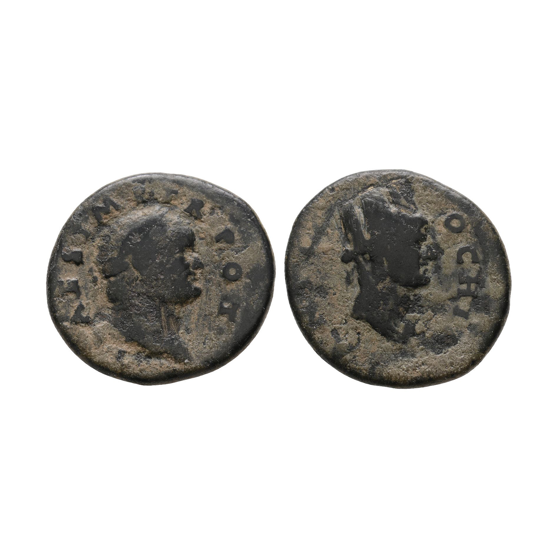 Titus, as Caesar, Antioch mint. Obv: T CAES IMP TR POT, laureate head right. Rev: ANTIOCHIA, turreted and draped bust of Tyche right. 4.51 grams, 20 mm.
