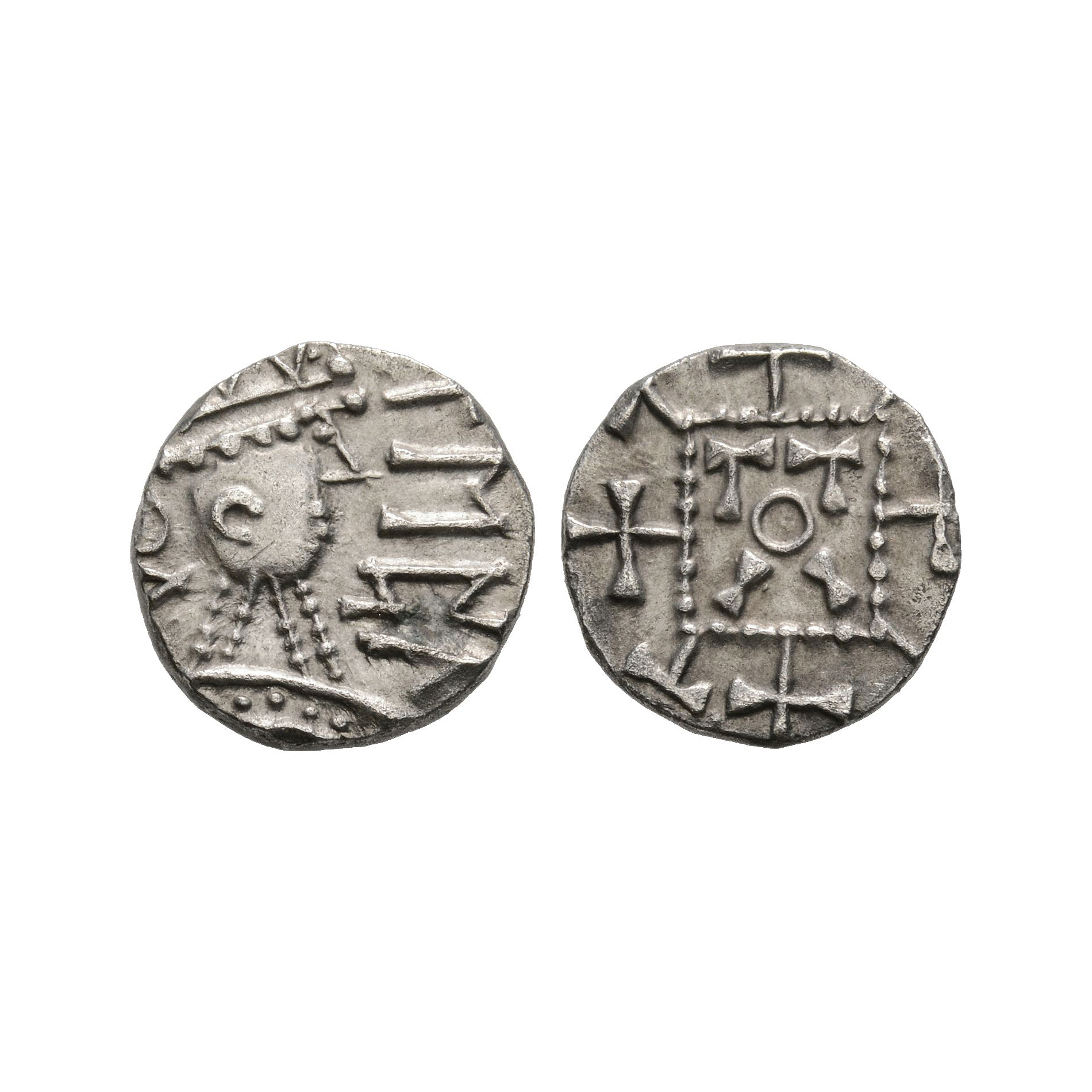Obv: radiate bust right, runic FMCF. Rev: variety C1, standard, TOTII; variety C2, four crosses abutting around the central standard. 1.17 grams.