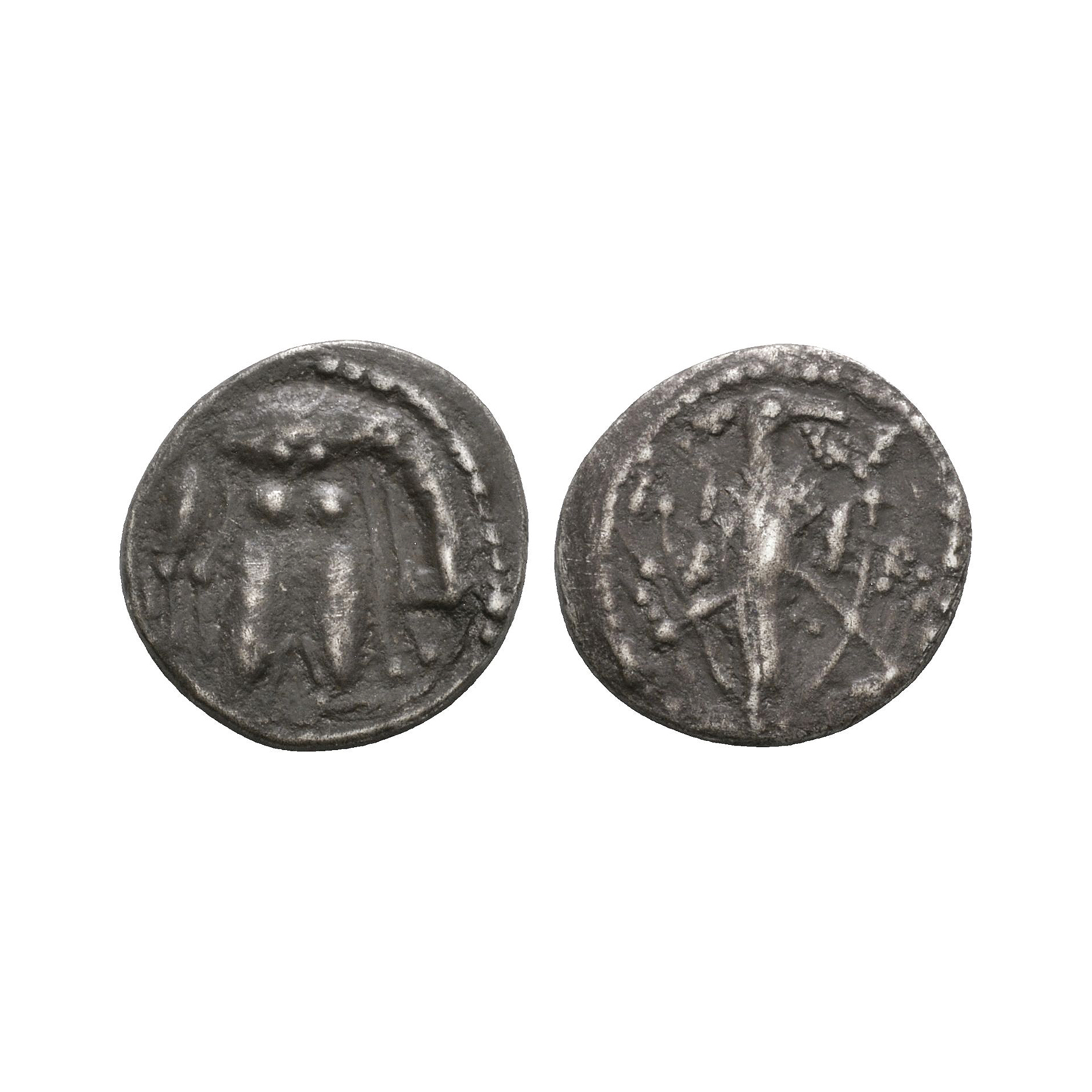 Anglo-Saxon Coins - Secondary Phase - Series V, Type 7 - Wolf and Twins AR Sceatta 710-760 A.D.
