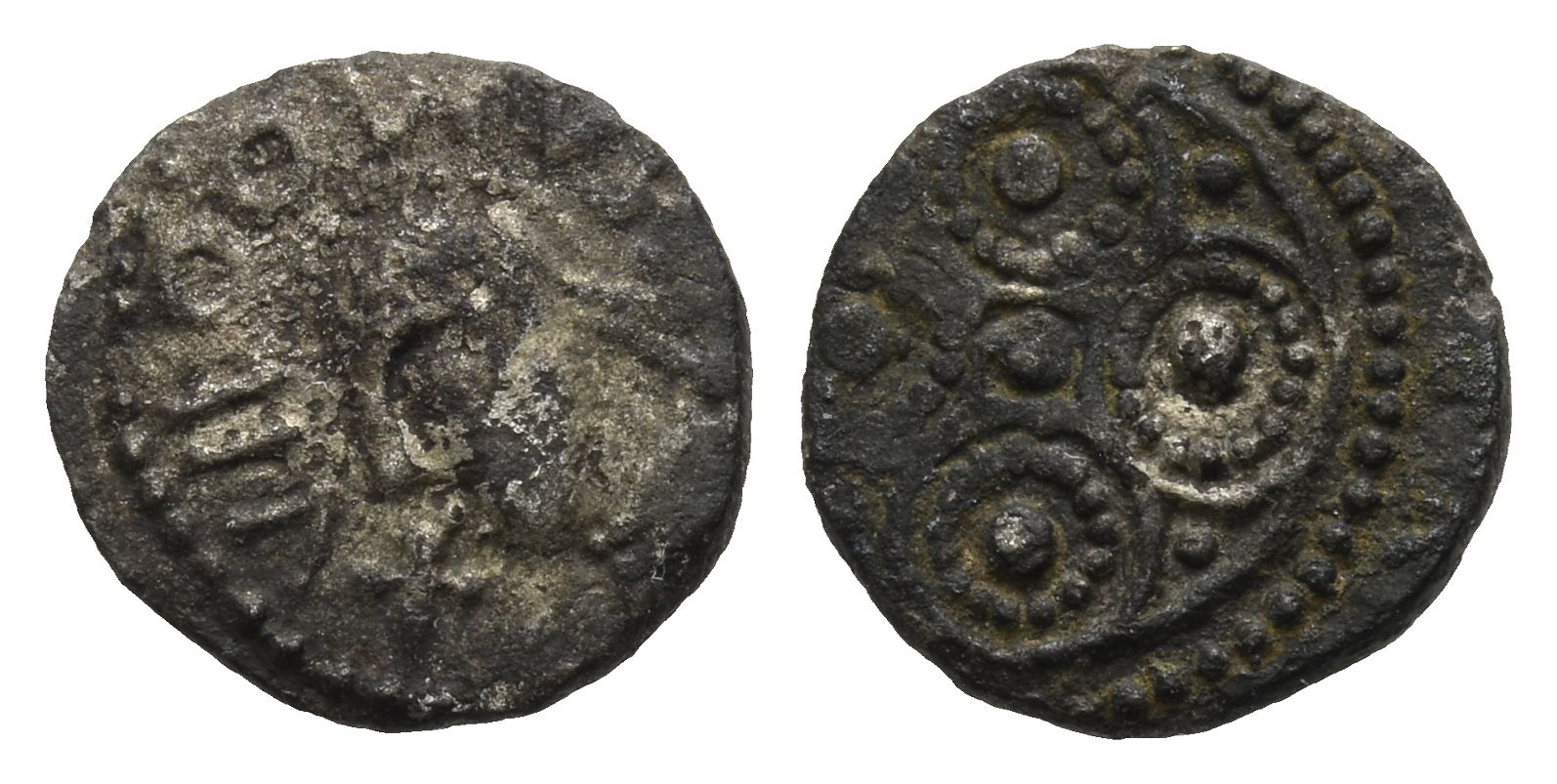 Series 2c; BM type 14. 'Celtic Cross' Group. +LVNDONIA(retrograde), diademed bust to left / Voided Celtic cross with central and terminal pellets; rosette in quarters. SCBI, 69 -; M427 II (IV, bust to right); SCBC 822. 0.86gr, 11mm, 11h.