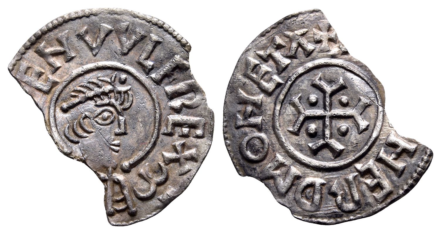 [✠ CO]ENVVLF REX m, diademed and draped bust to right / ✠ [SVVEF]HERD MONETΛ, cross fourchée with pellets in angles. Naismith C43e; SCBI 68 (Lyon), 571; North 353; SCBC 916. 0.99gr, 21mm, 3h.