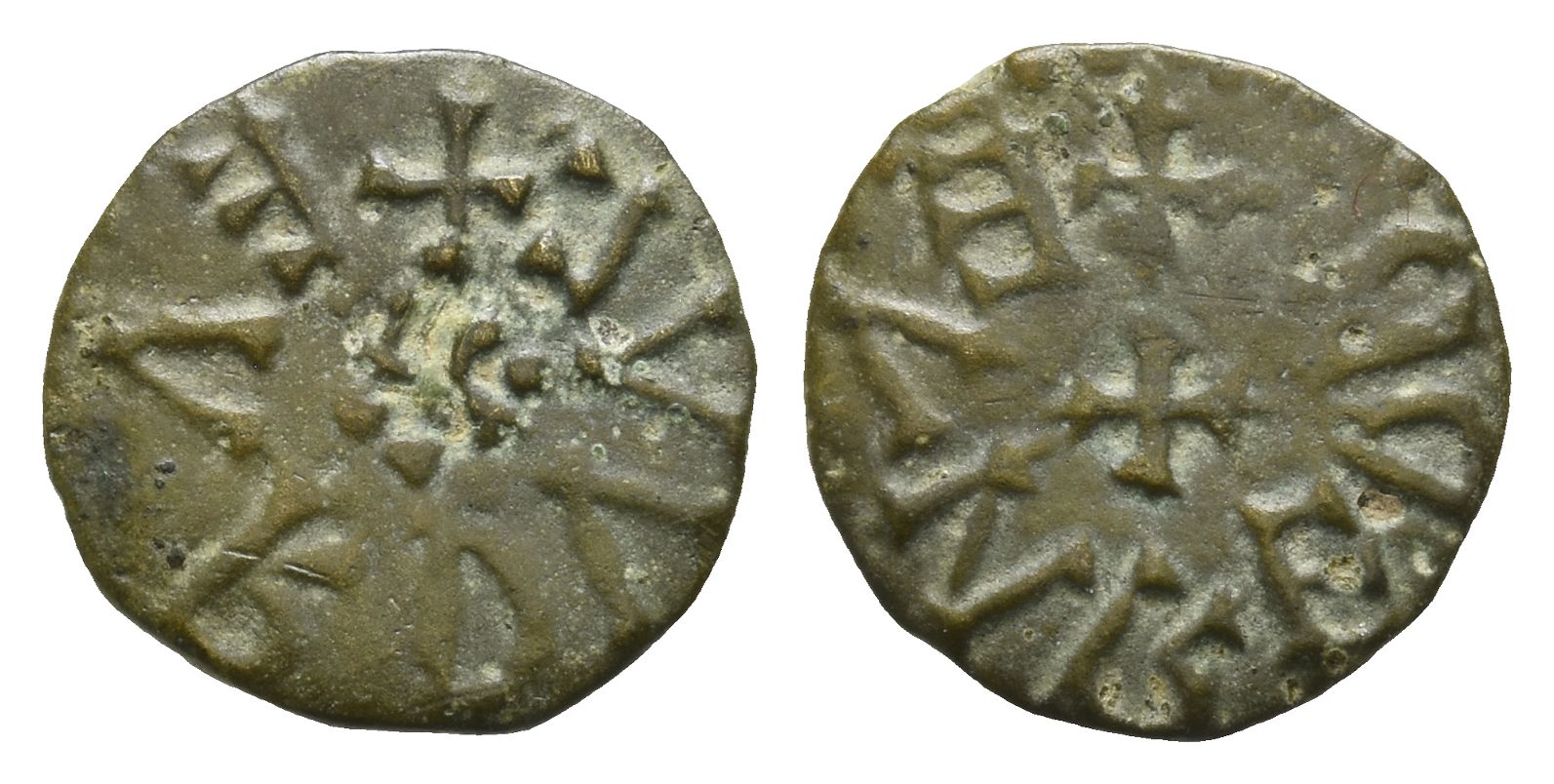 Eadwulf, moneyer. (Cross patonce) EΛNRED R[..] (retrograde) around central small cross patonce / + EΛRDVVLF (retrograde) around central small cross with pellets in angles. SCBI Lyon -; SCBI 69 (Abramson) -; Pirie -; North 186; SCBC 862. 0.91gr, 12mm, 5h.
