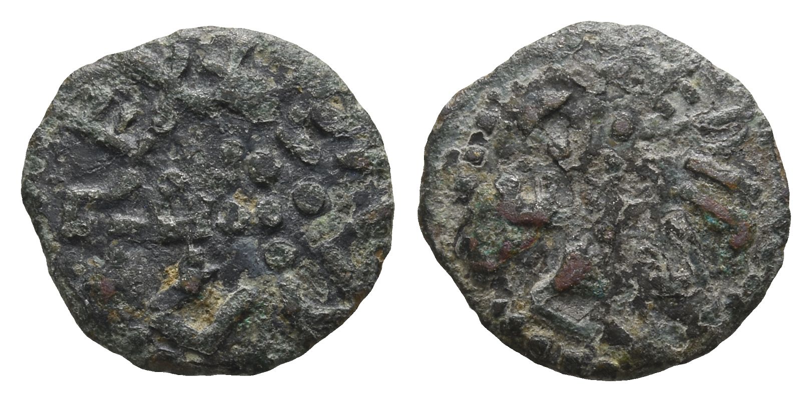 In the name of Eanred. Uncertain moneyer. + EANR REX around central pelleted cross / Blundered legend around uncertain central motif. North p. 72; SCBC 872. 0.68gr, 13mm, 3h.