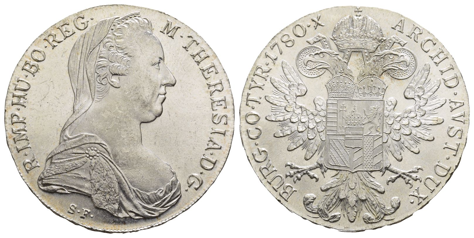 The Maria Theresia Taler was originally struck in Austria between 1740 and 1780. It was the circulating currency of the Holy Roman Empire and its dominions, and it was one of the most important trade coins in Europe and the world. After the death of Maria Theresia in 1780, the coin continued to be minted until today, with the date frozen at 1780. It is estimated that until 2000, 389 million pieces were minted. As of 2024, it is still sold by the Vienna Mint (Numista note).