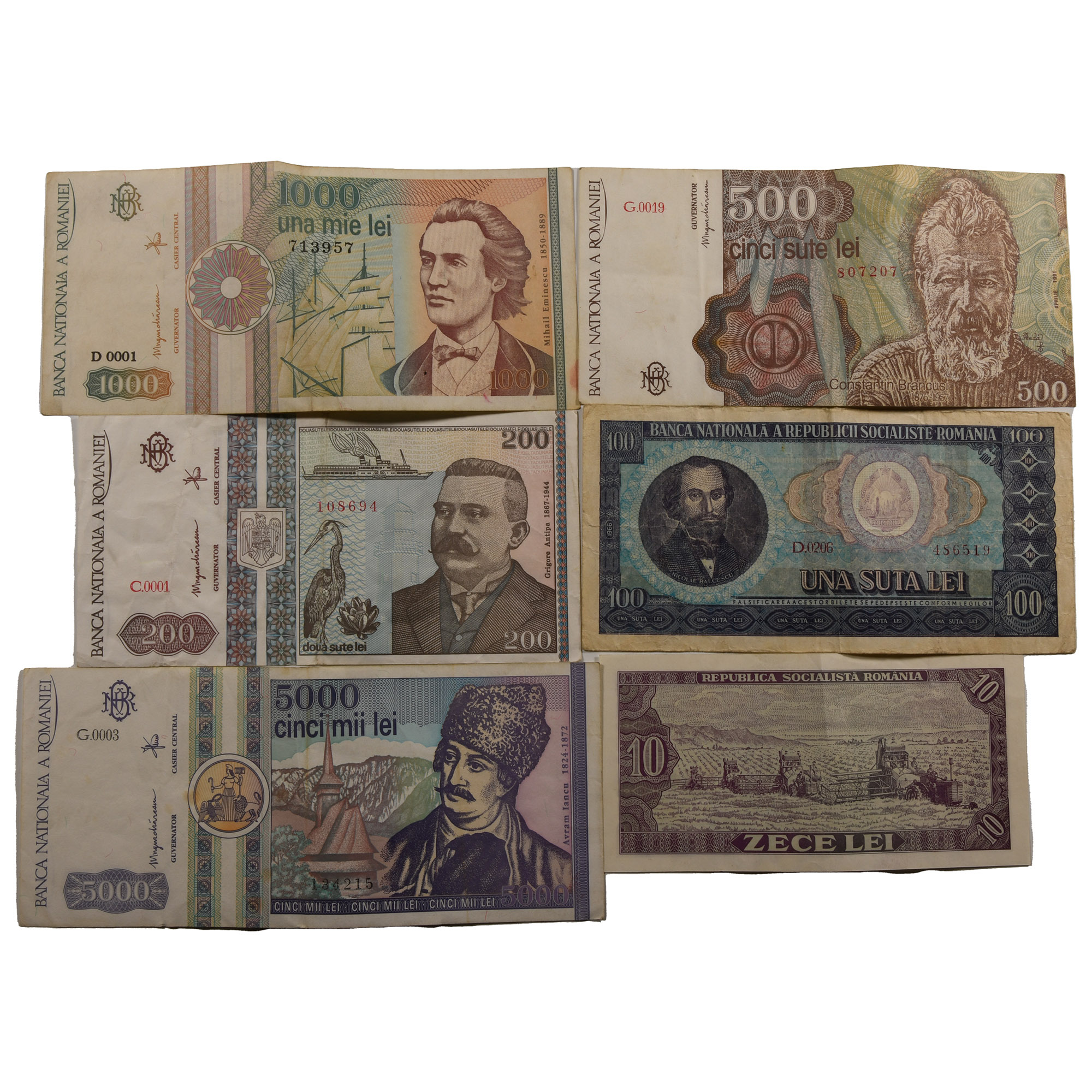 Banknotes - Romania - 10 to 5000 Lei Banknote Group [6] 20th century A.D.