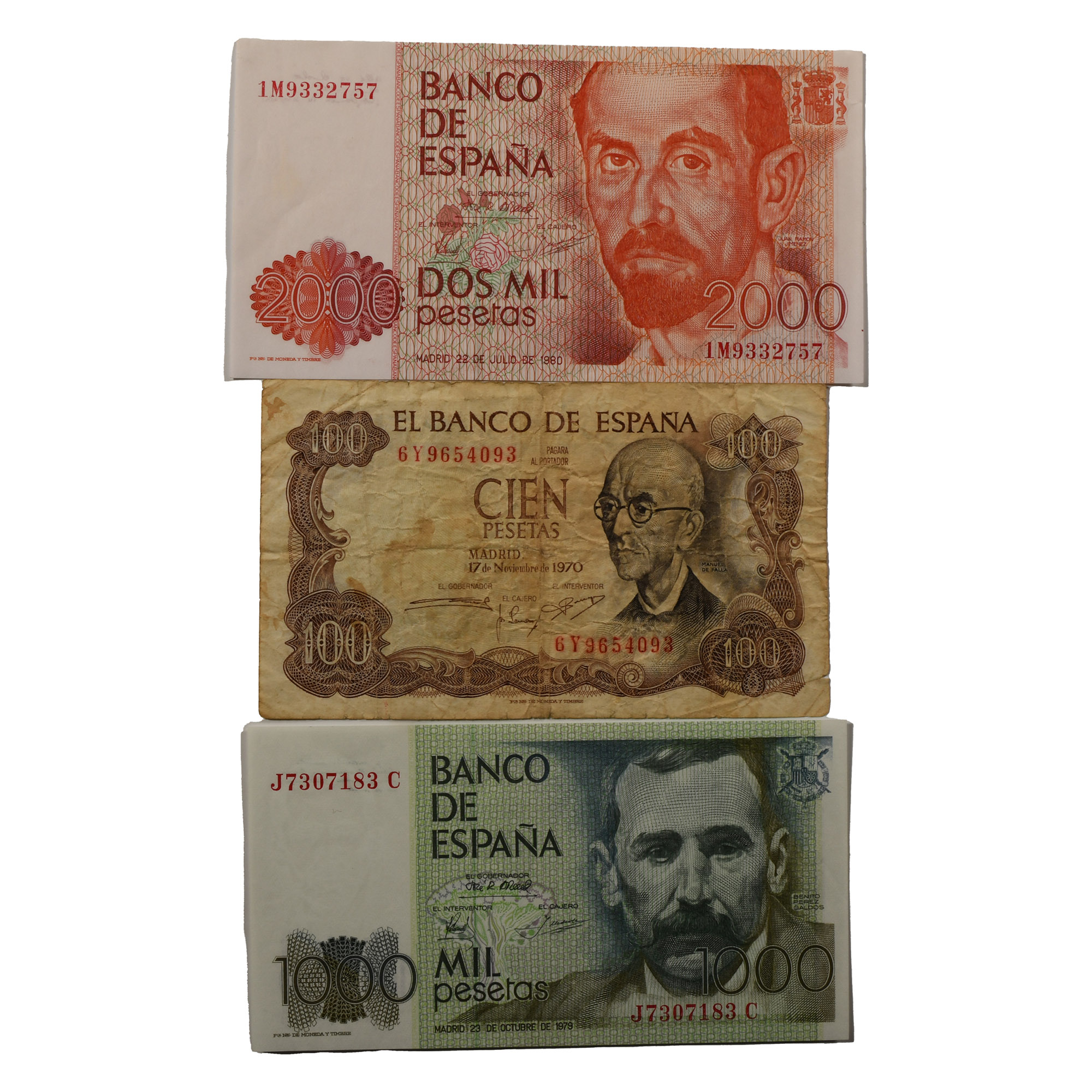 Banknotes - Spain - 100 to 2000 Peseta Banknote Group [3] 20th century A.D.