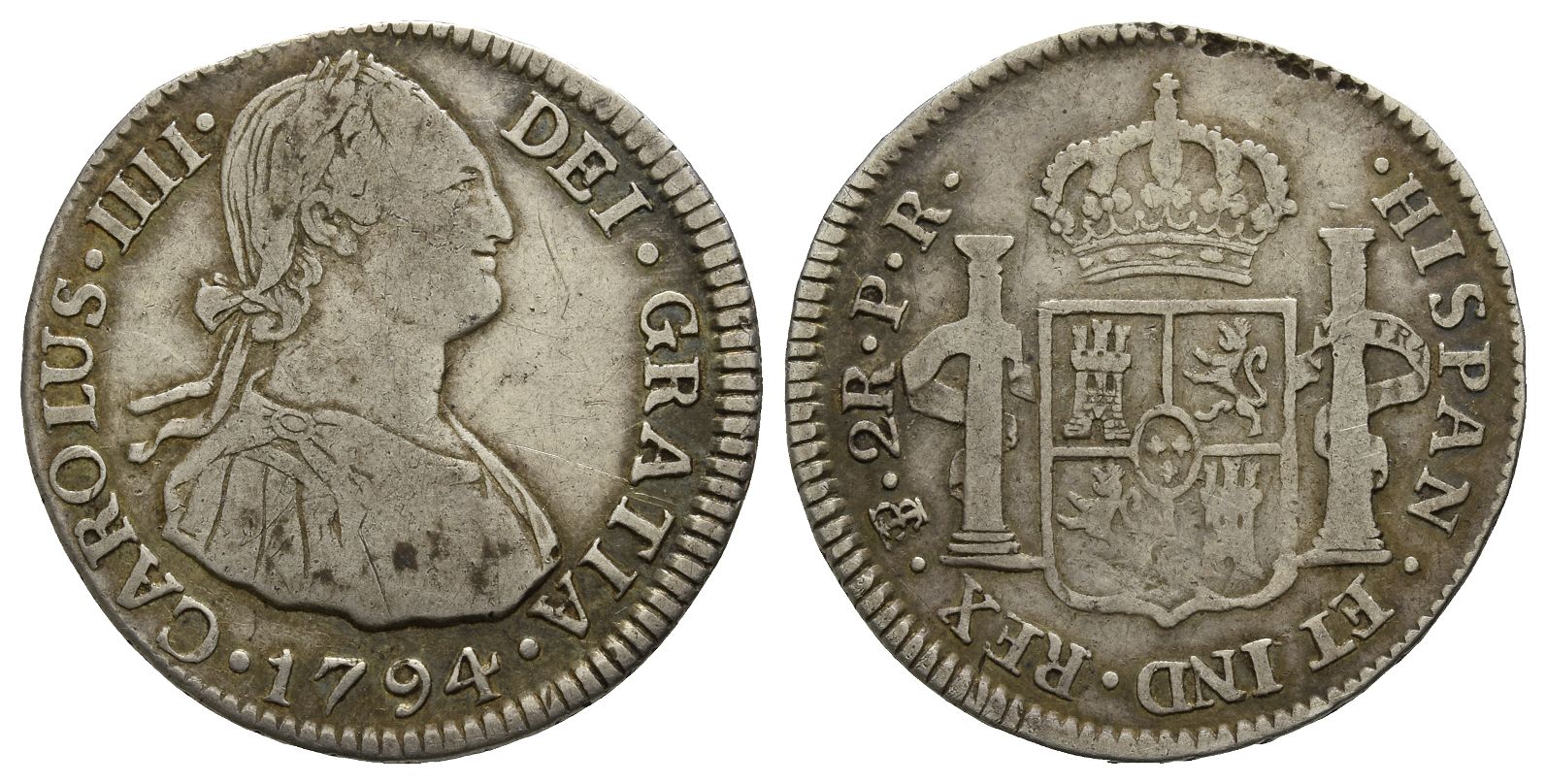 Bolivia, Spanish Colonial. Charles IV AR 2 Reales. Dated 1794.