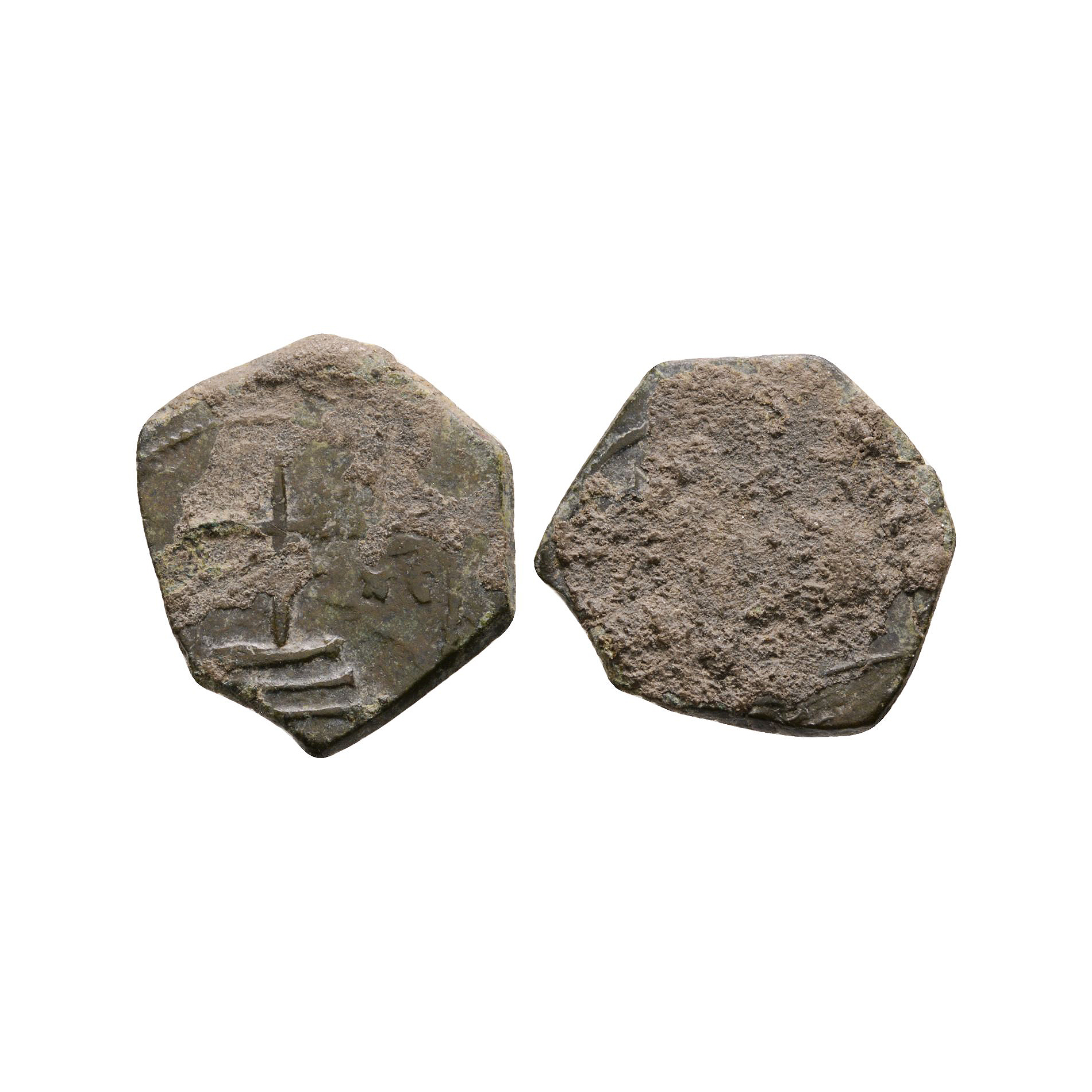 Obv: illegible. Rev: cross on steps with XC to right. 1.97 grams.