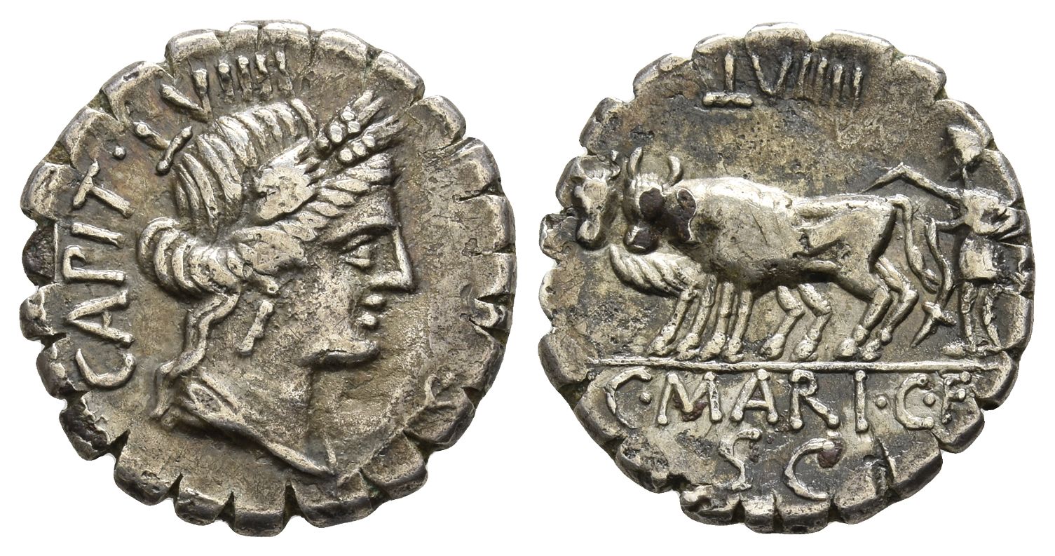 C. Marius C. f. Capito AR Serrate Denarius. 81 BC. Rome mint.