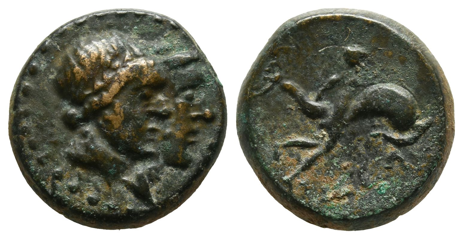 Jugate heads of Apollo, laureate, and Artemis to right / Hermias swimming with dolphin to right; IAΣΕΩΝ. Cf. HN Online 277 (temporary). 8,48gr, 20mm, 12h.