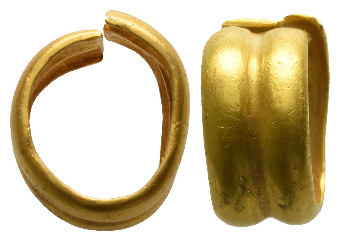 In the shape of a double thick band. Van Arsdell 1-3 var. (plain band); see ABC p. 202. 3.20gr, 15mm x 7mm.