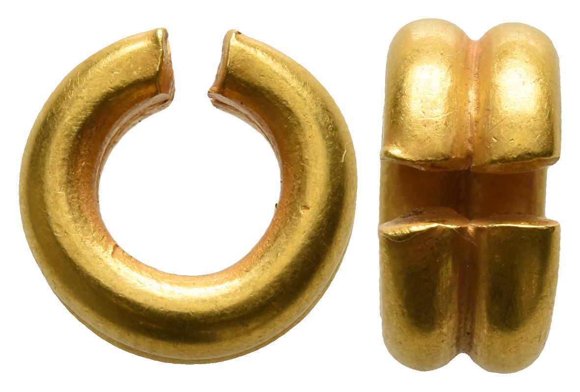 In the shape of a double thick band. Van Arsdell 1-3 var. (plain band); see ABC p. 202. 7.37gr, 13mm x 7mm.
