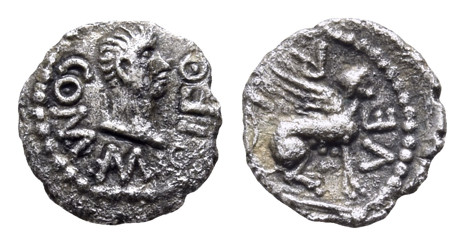 Celtic Britannia. Atrabates and Regni, Verica AR Minim. AD 10-20. Verica Sphinx Right type.