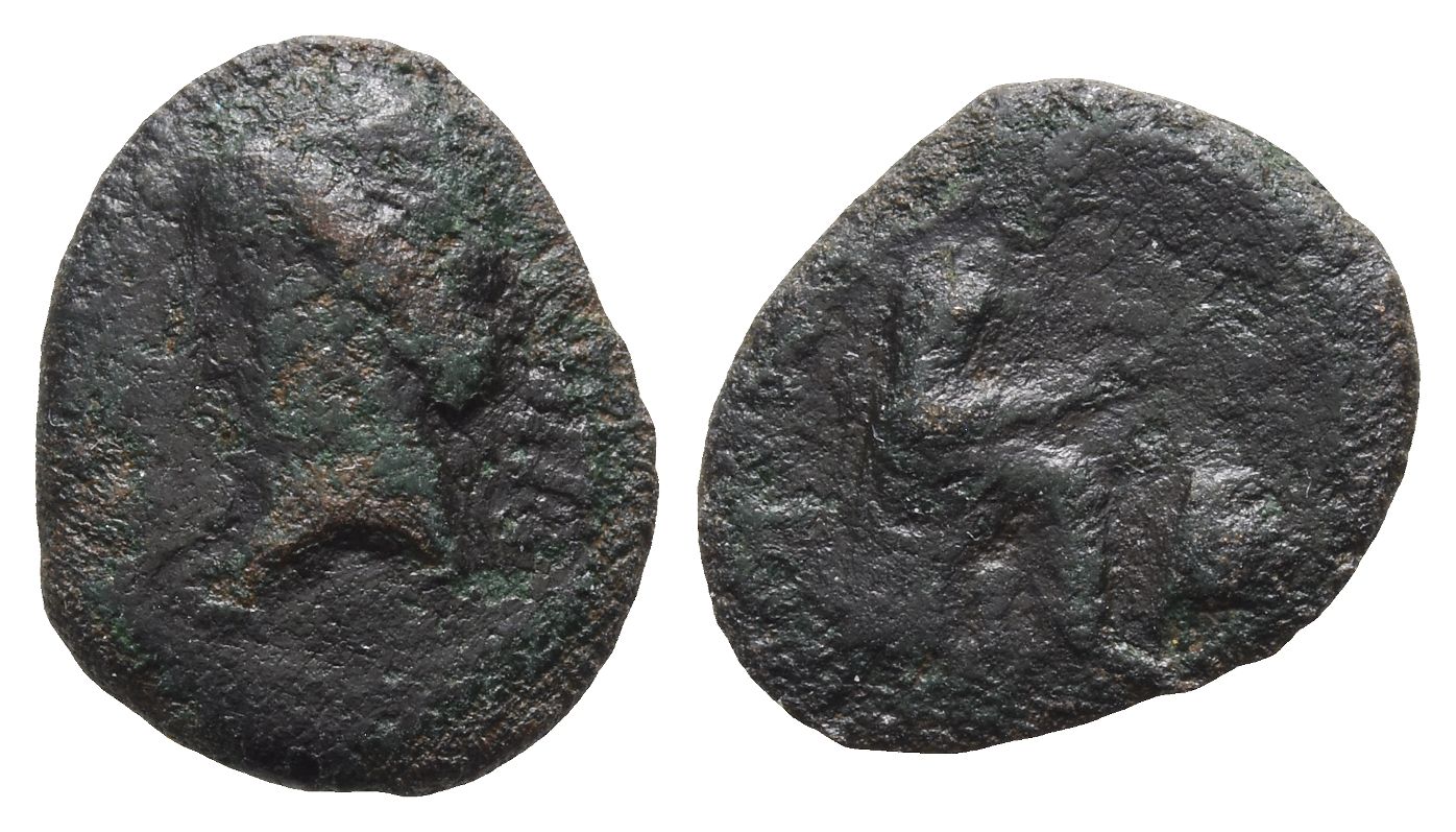 Winged head to left, [CVNOBELIN] around / Metal worker seated to right, hammering vase, [TASCIO] before. ABC 2969; VA 2097; BMC 1072-83; SCBC 342. 1.99gr, 16mm, 5h.