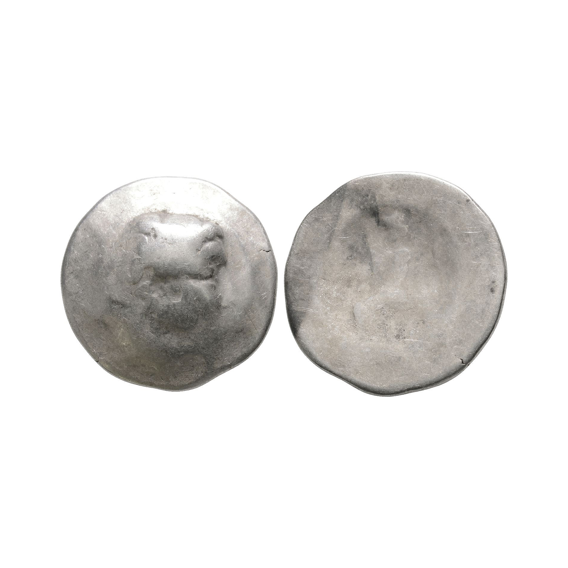 Imitating Macedonian type. Obv: profile bust right. Rev: Zeus seated left. 15.36 grams.